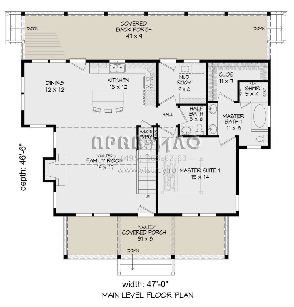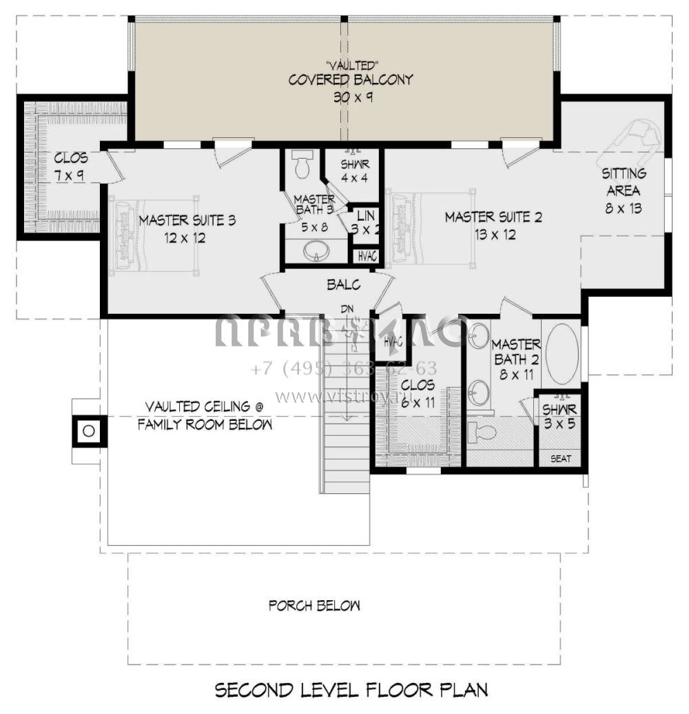 Проект двухэтажного дома без гаража в стиле Ранчо S5-185 (940-00444)