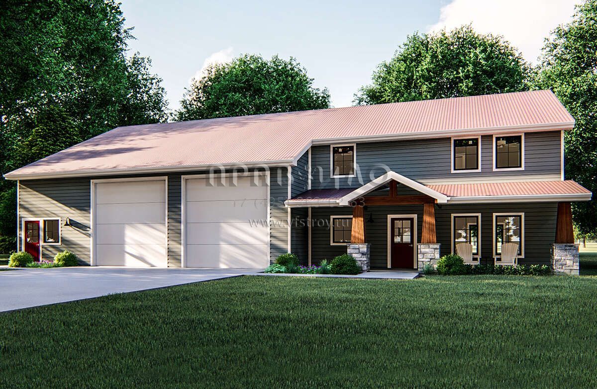 Проект двухэтажного дома с гаражом на две машины в американском стиле S5-185 (963-00379)