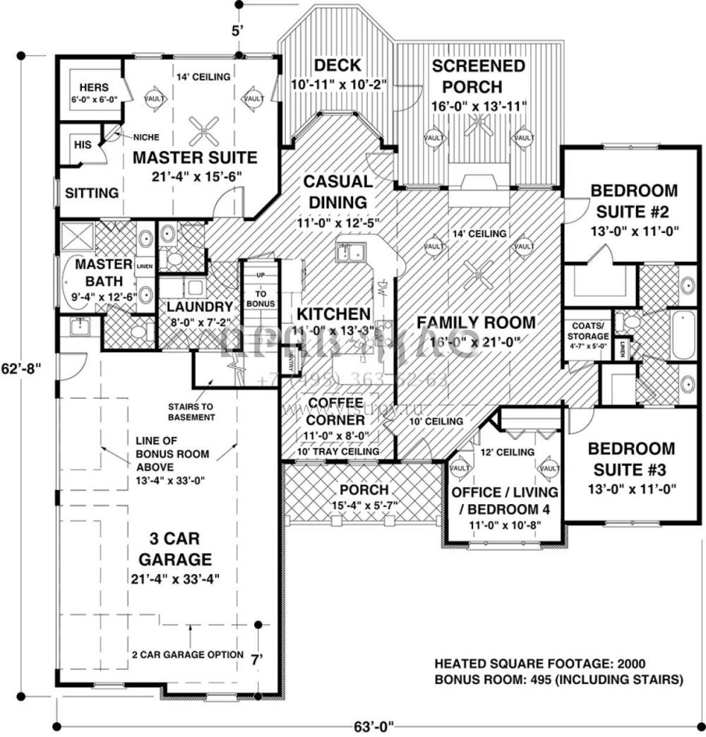 Проект одноэтажного дома с гаражом на три и более машин в стиле Ранчо S5-186 (036-00236)