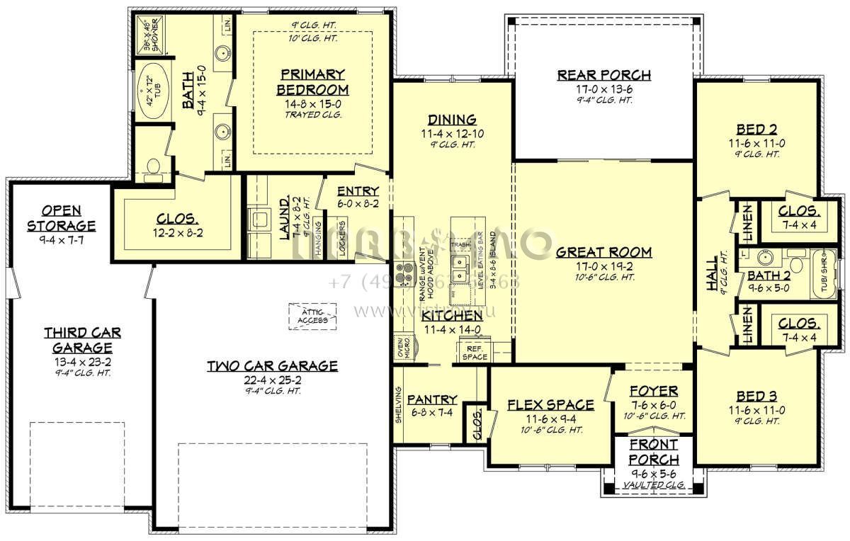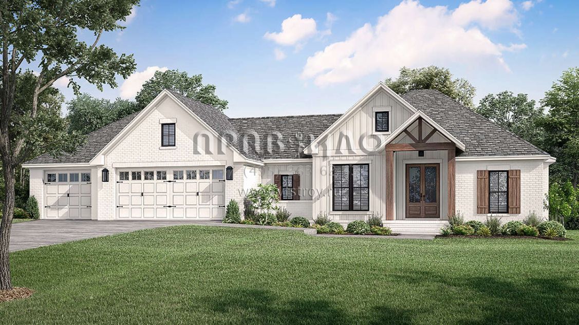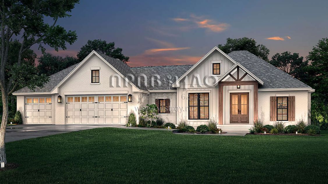 Проект одноэтажного дома с гаражом на три и более машин в современном стиле S5-186 (041-00241)