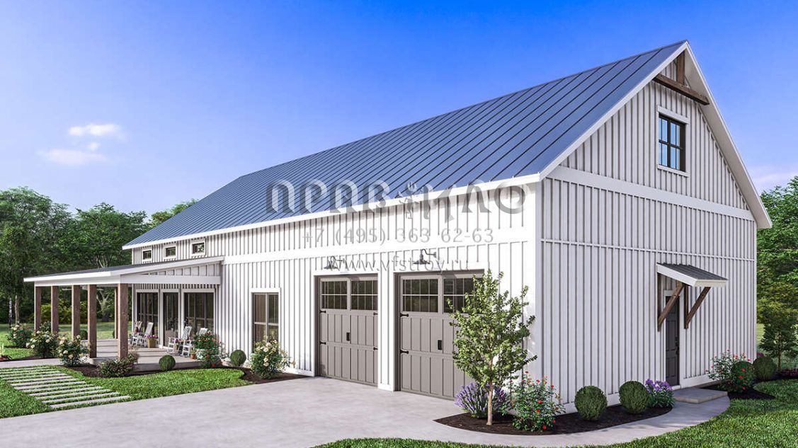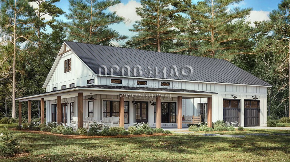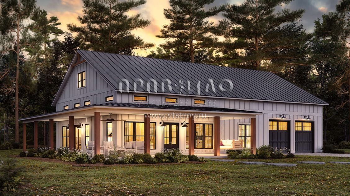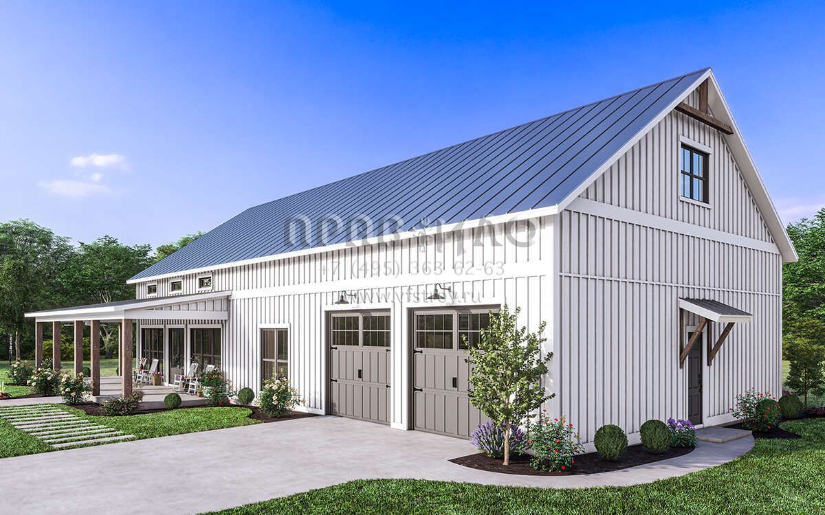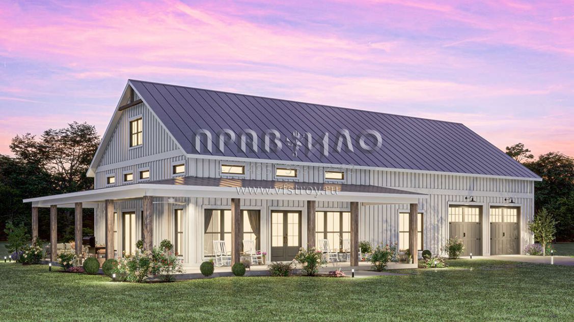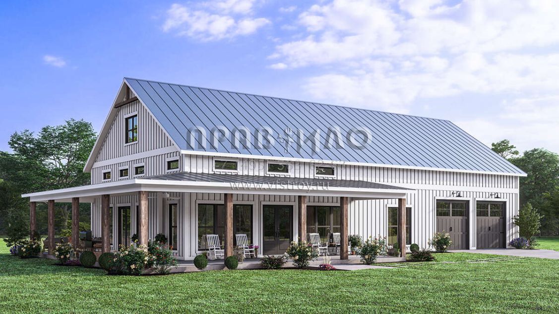 Проект одноэтажного дома с гаражом на две машины в стиле БарнХаус S5-186 (041-00334)