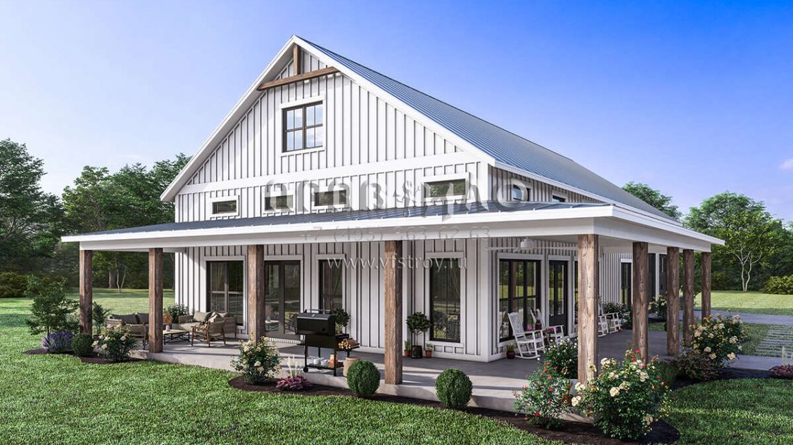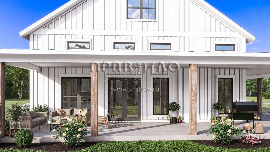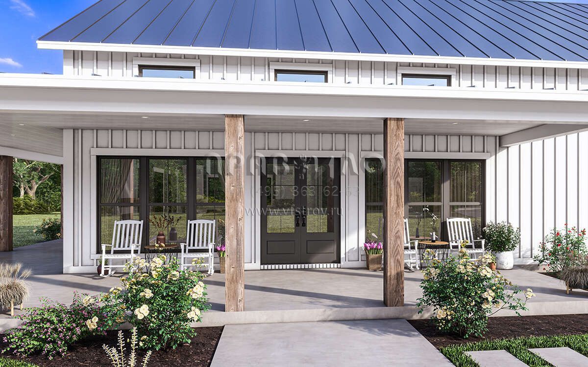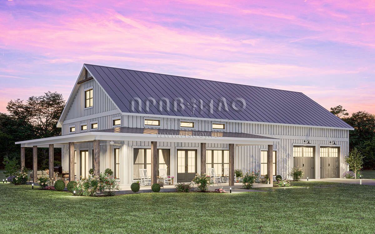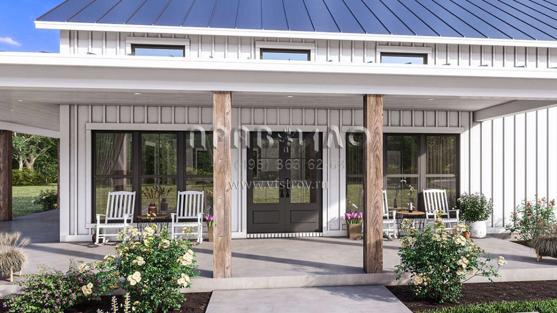 Проект одноэтажного дома с гаражом на две машины в стиле БарнХаус S5-186 (041-00334)