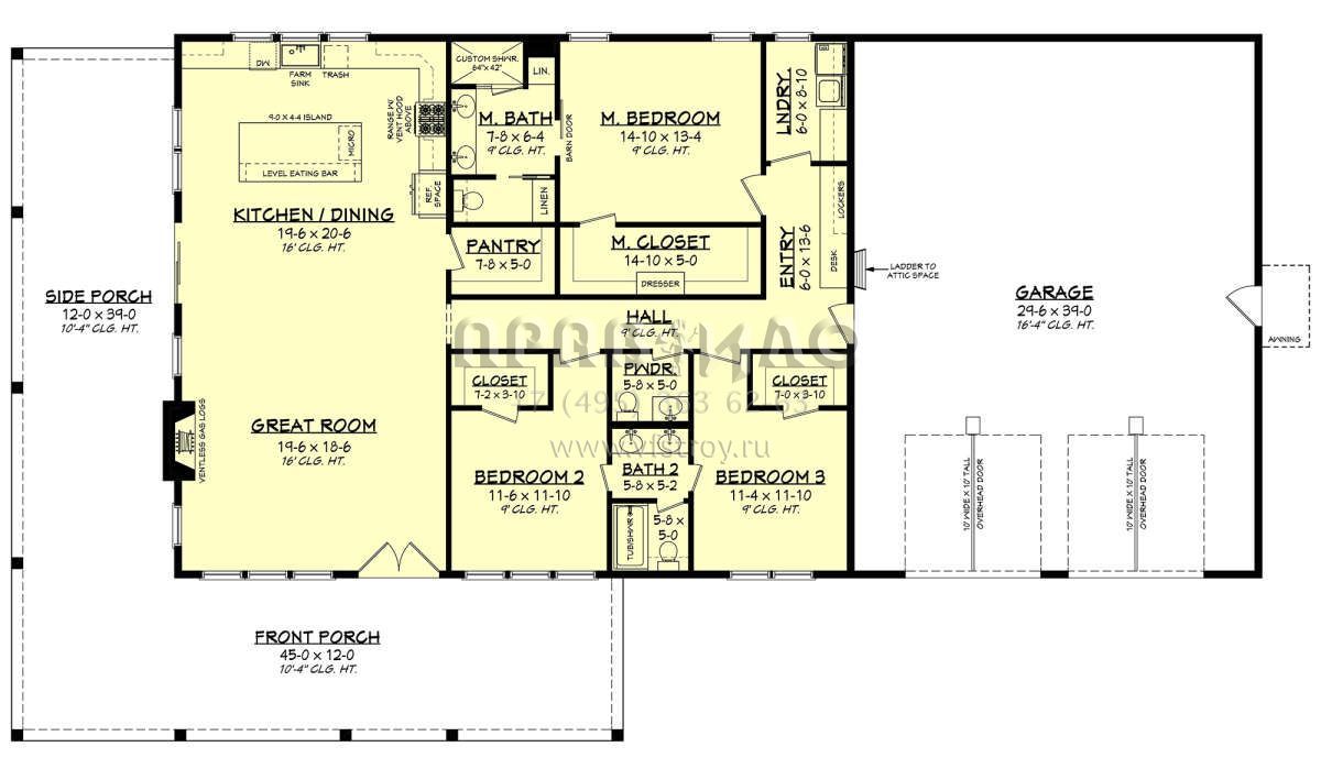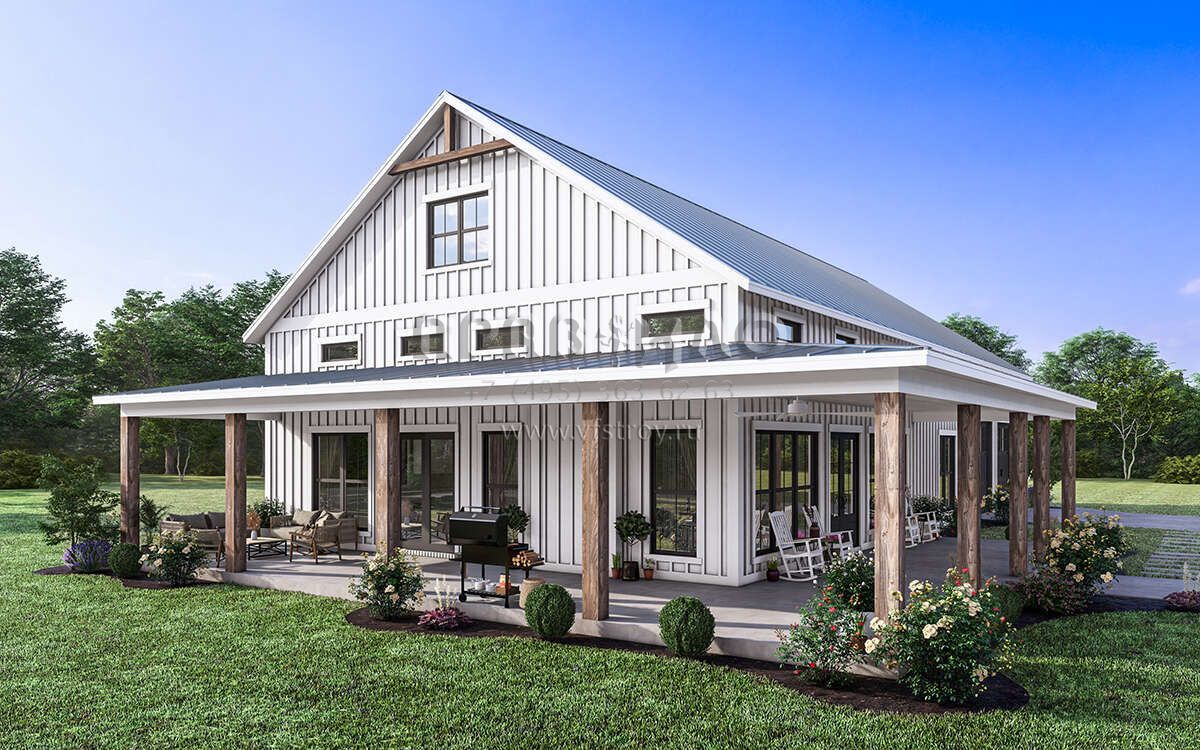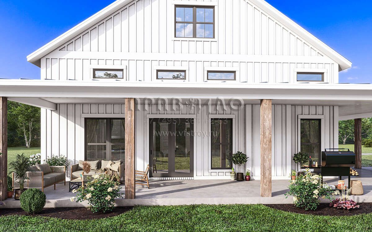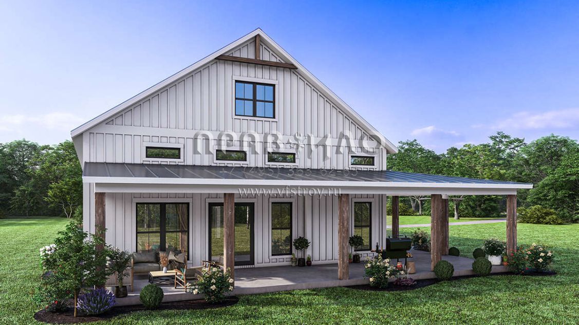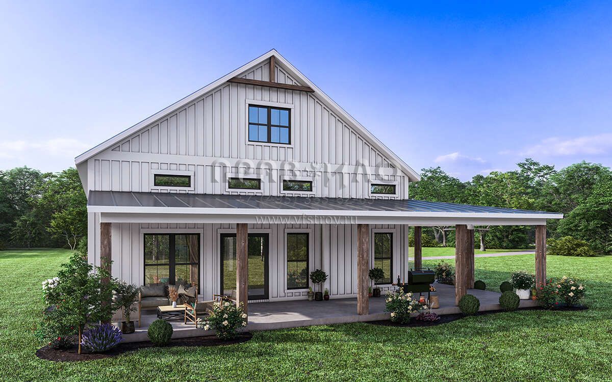 Проект одноэтажного дома с гаражом на две машины в стиле БарнХаус S5-186 (041-00334)