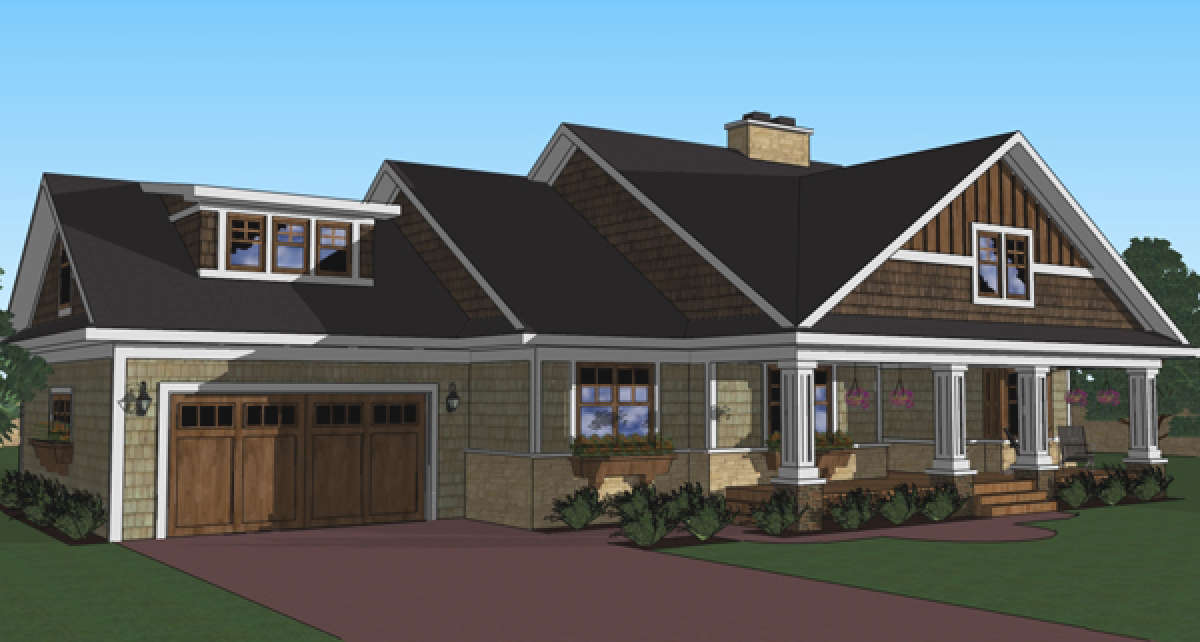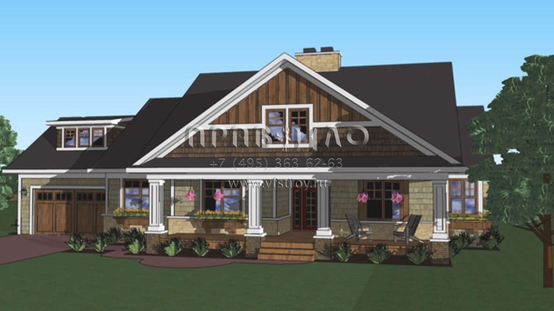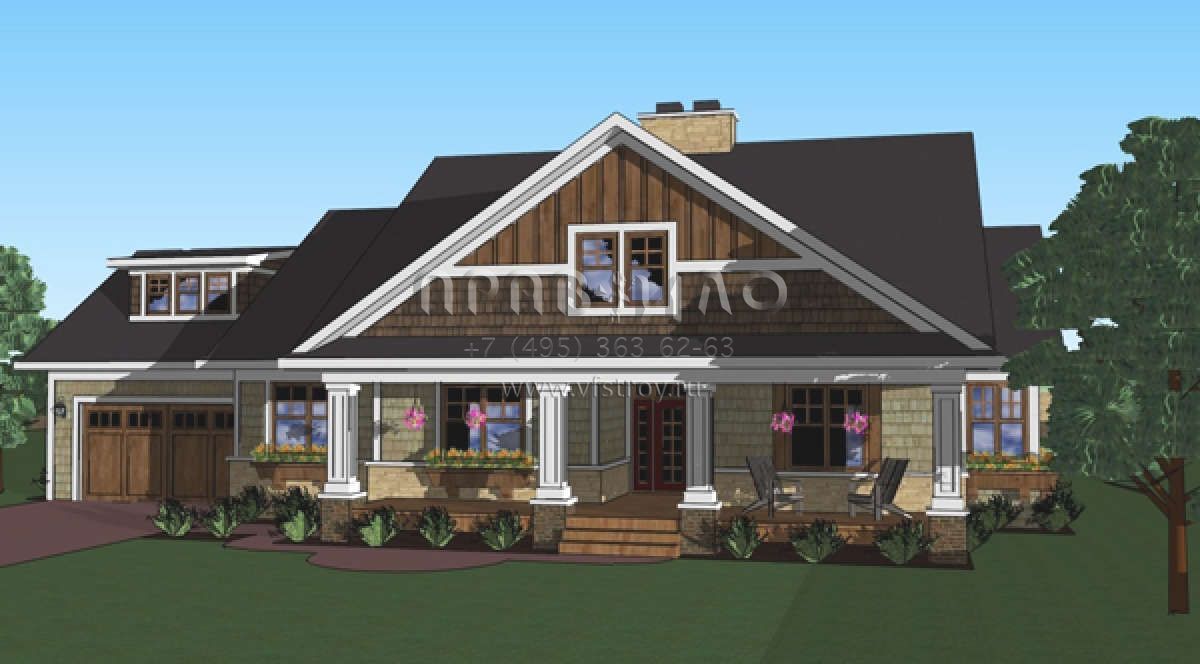 Проект одноэтажного дома с гаражом на две машины в американском стиле S5-186 (098-00267)