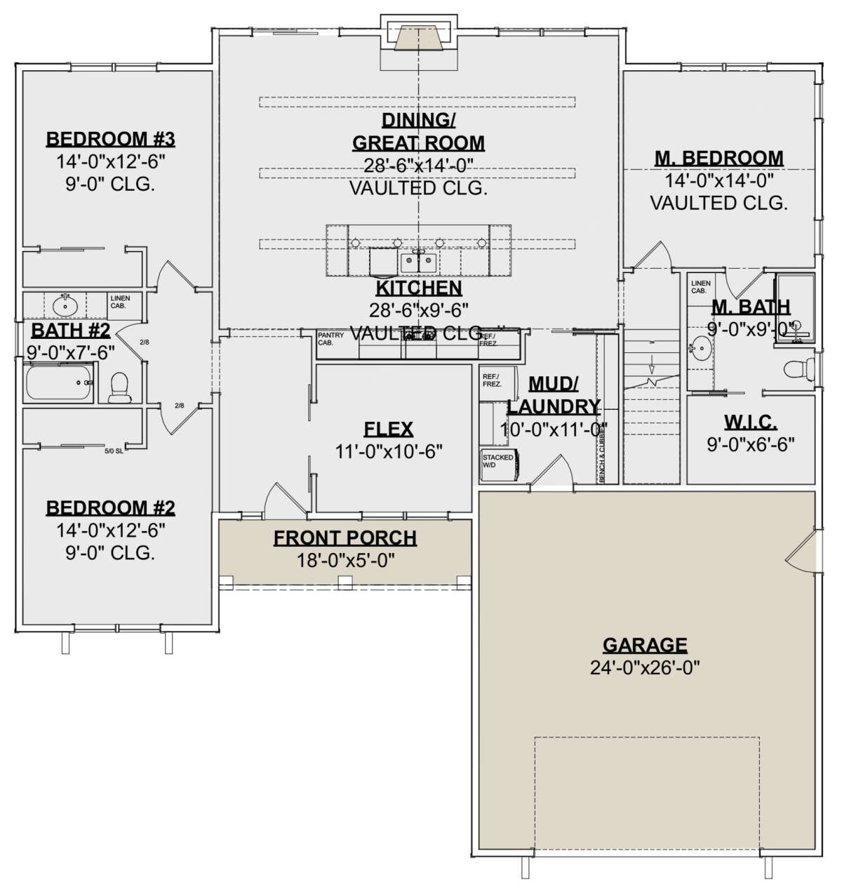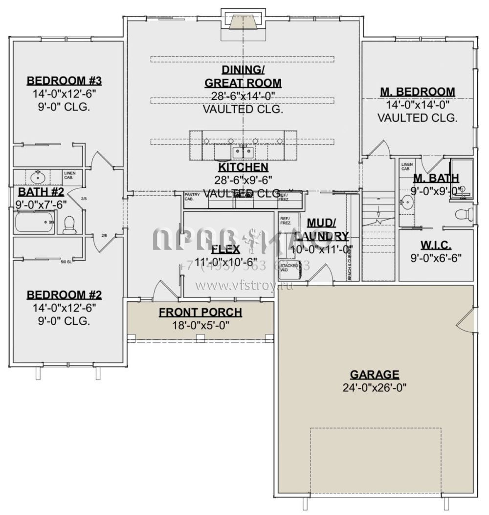 Проект одноэтажного дома с гаражом на две машины в стиле Ранчо S5-186 (1462-00031)