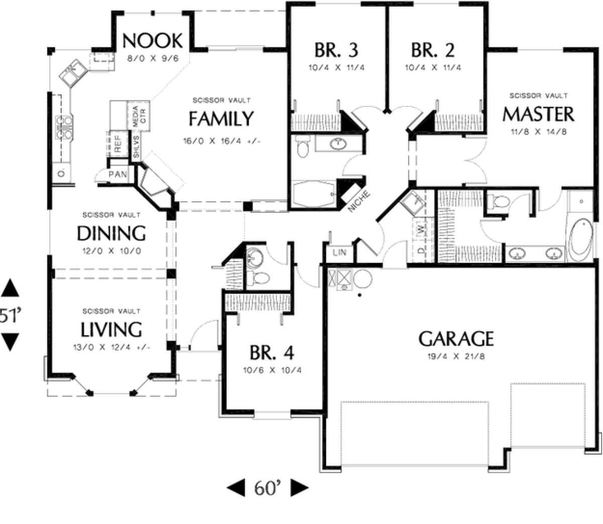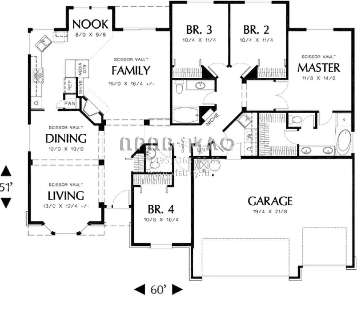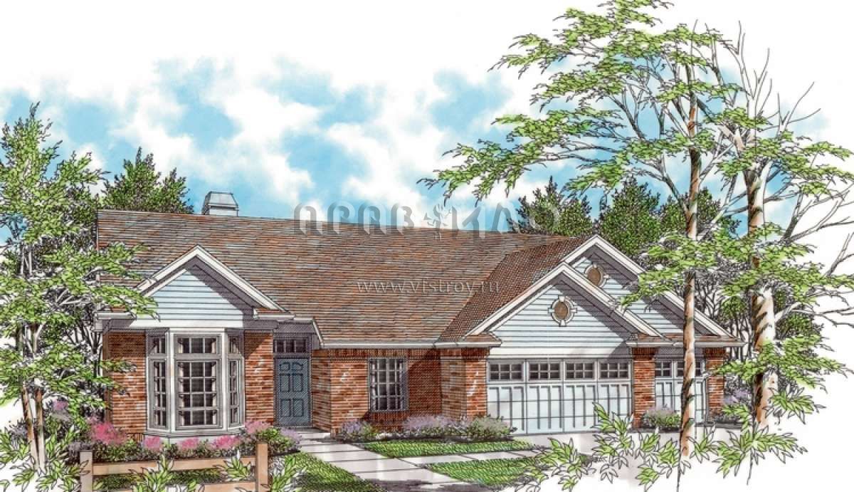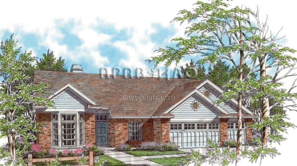 Проект одноэтажного дома с гаражом на три и более машин в стиле Ранчо S5-186 (2559-00065)