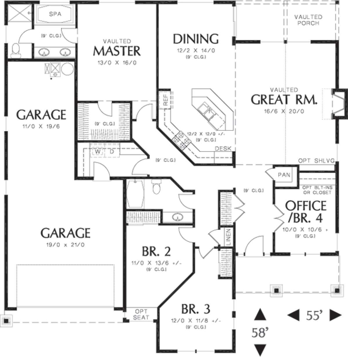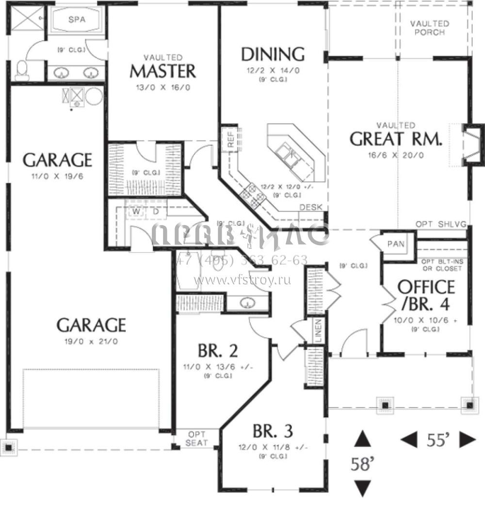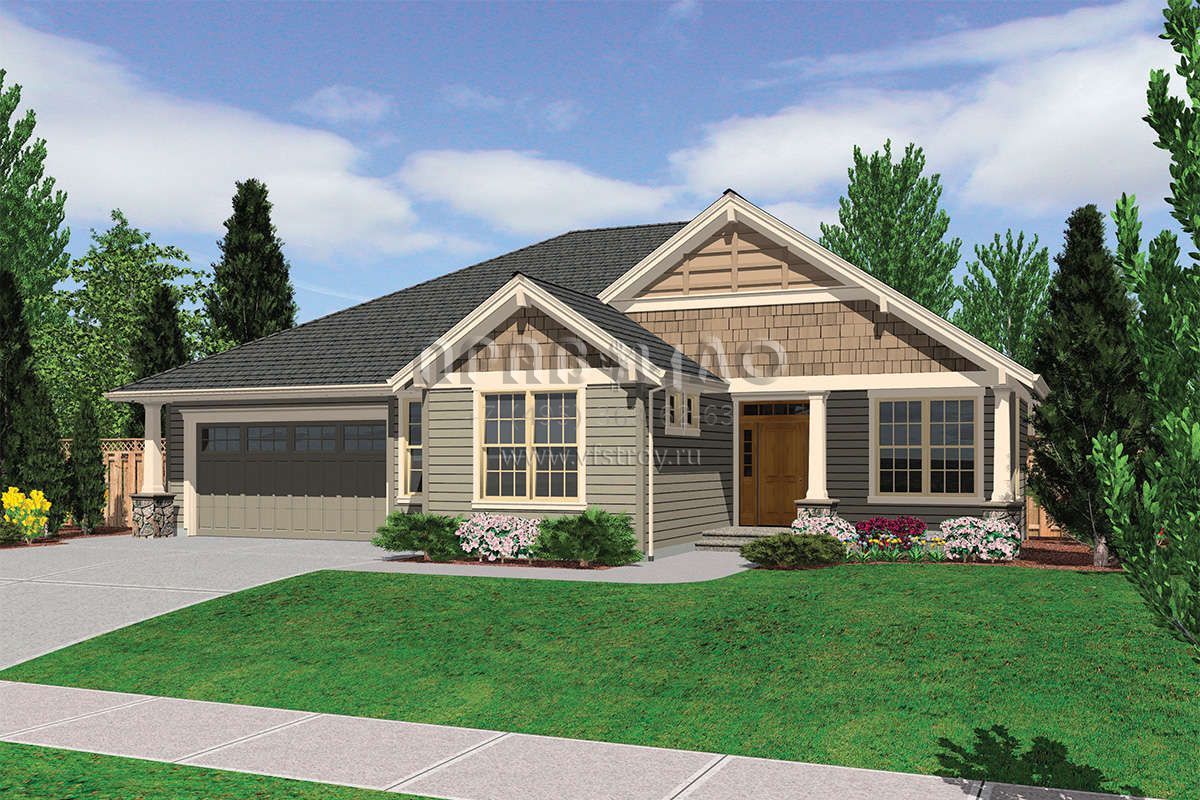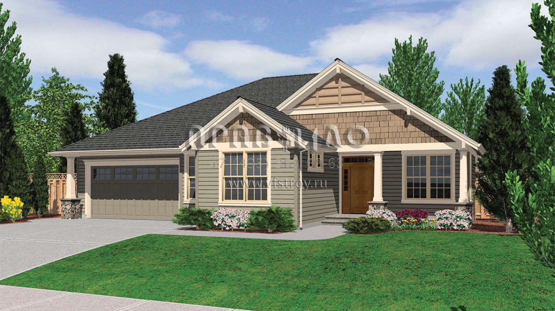 Проект одноэтажного дома с гаражом на три и более машин в американском стиле S5-186 (2559-00140)