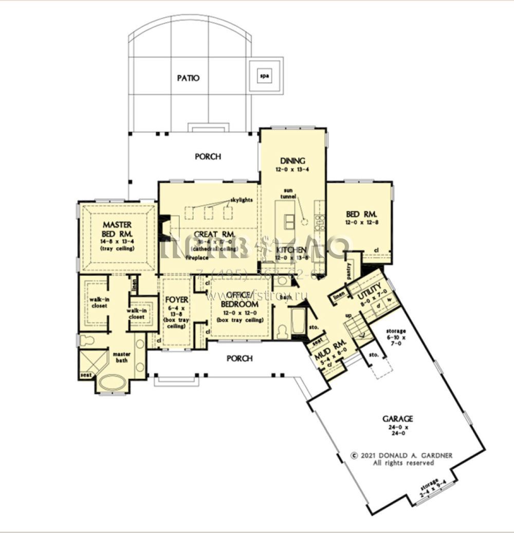 Поскольку этот проект разрабатывался иностранными архитекторами, для строительства дома требуется переработка проекта под действующие в России нормы. Данные визуализации проекта представлены для ознакомления с концепцией проекта. Проект разработан американским архитектурным бюро и представлен America's Best House Plans.