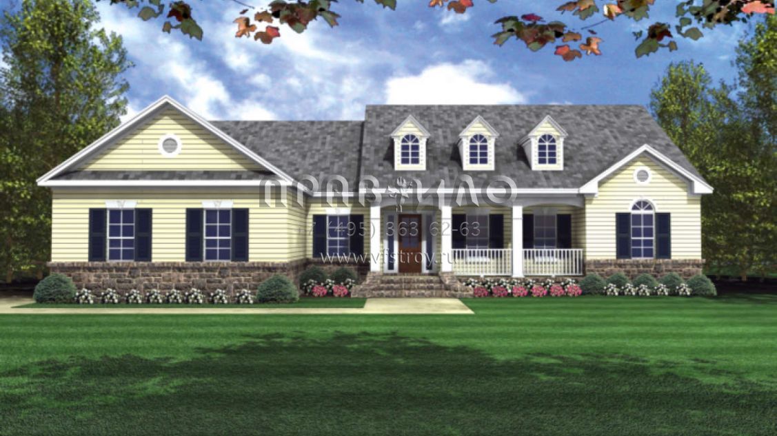 Проект одноэтажного дома с гаражом на две машины в стиле Ранчо S5-186 (348-00182)