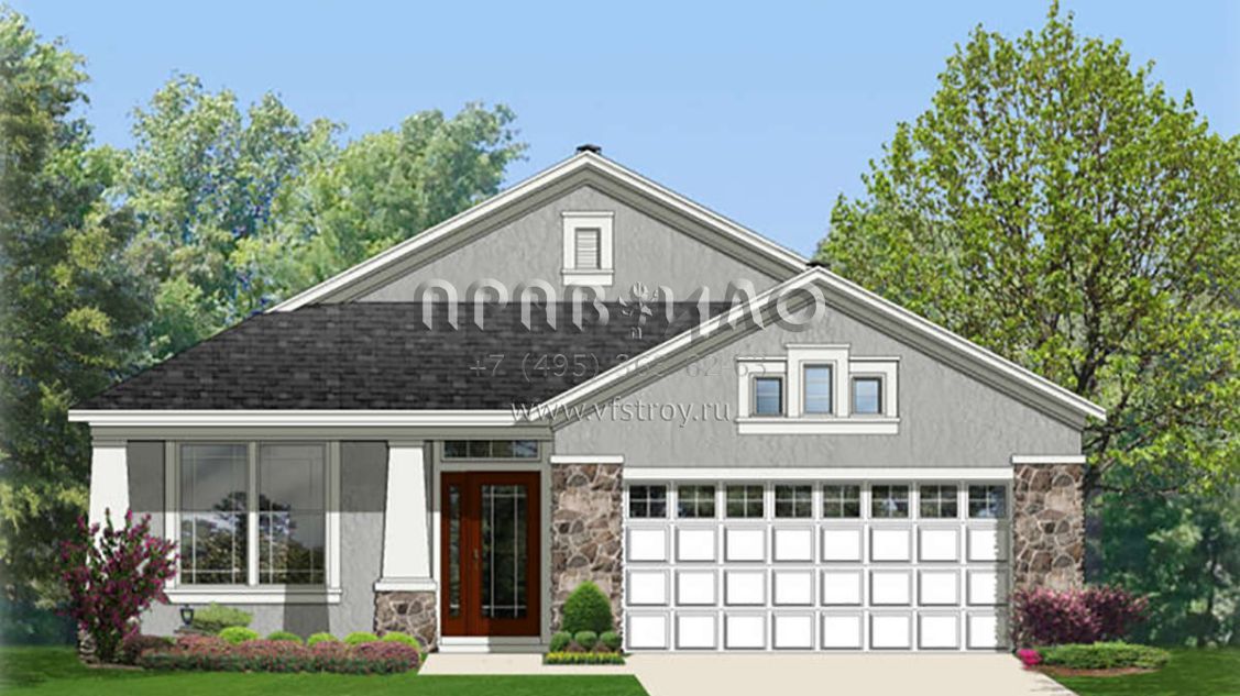 Проект одноэтажного дома с гаражом на две машины в американском стиле S5-186 (3978-00099)