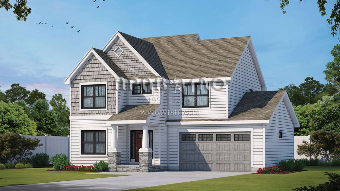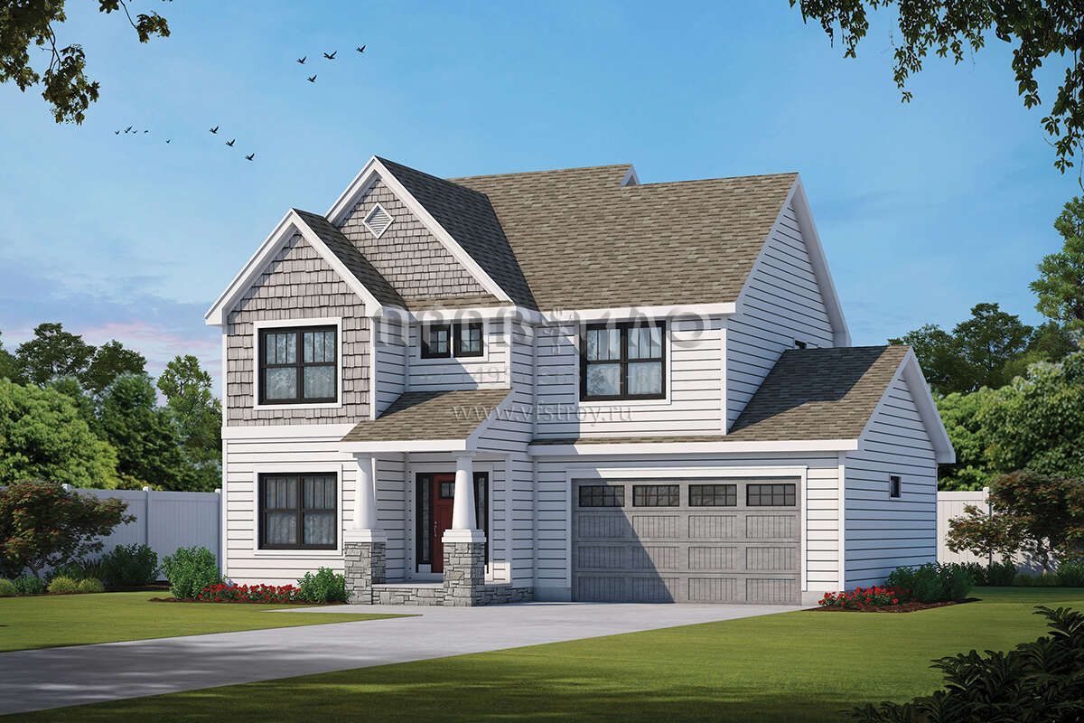 Проект двухэтажного дома с гаражом на две машины в американском стиле S5-186 (402-01731)