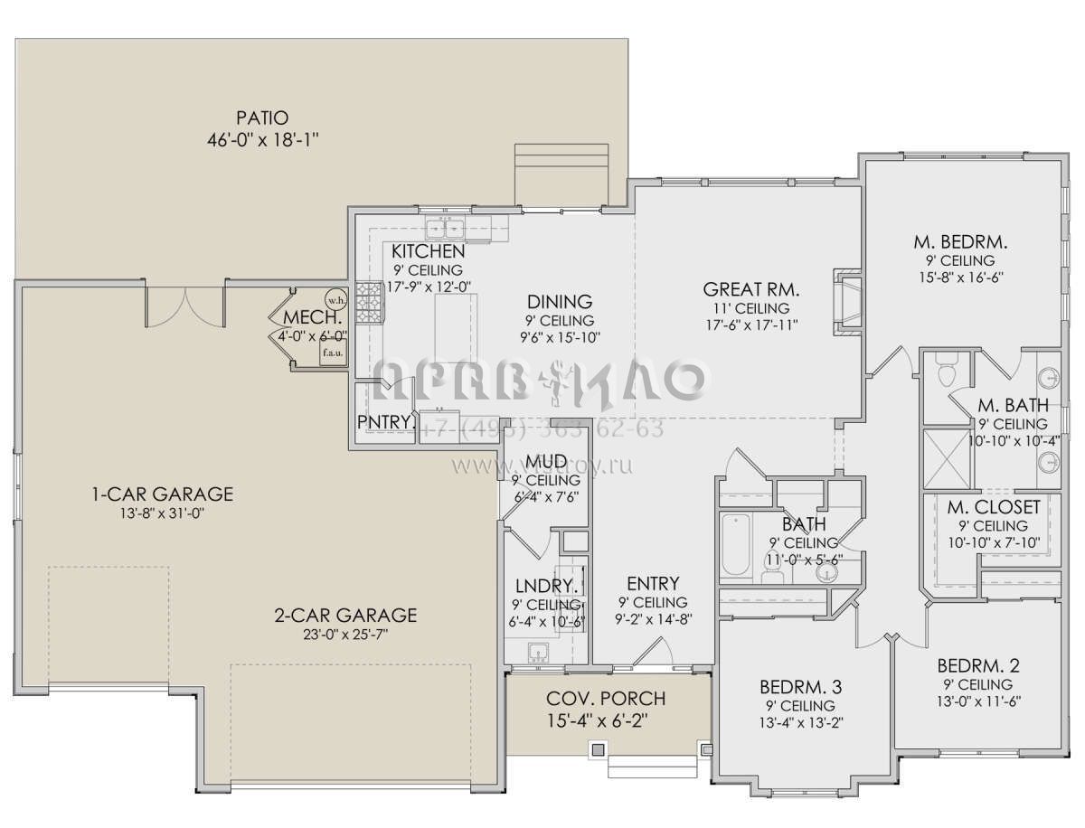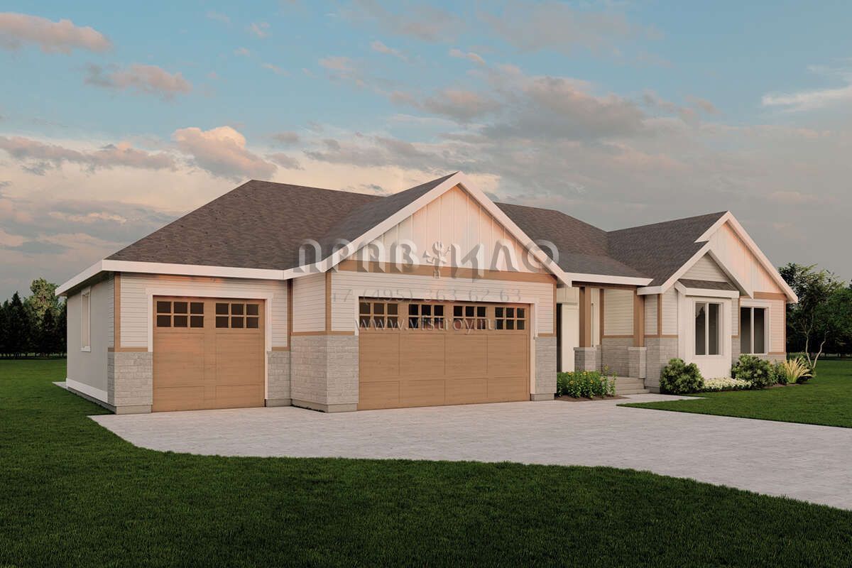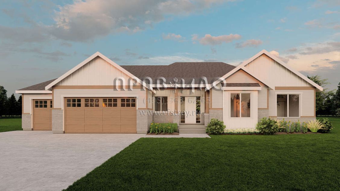 Проект одноэтажного дома с гаражом на три и более машин в современном стиле S5-186 (6422-00009)
