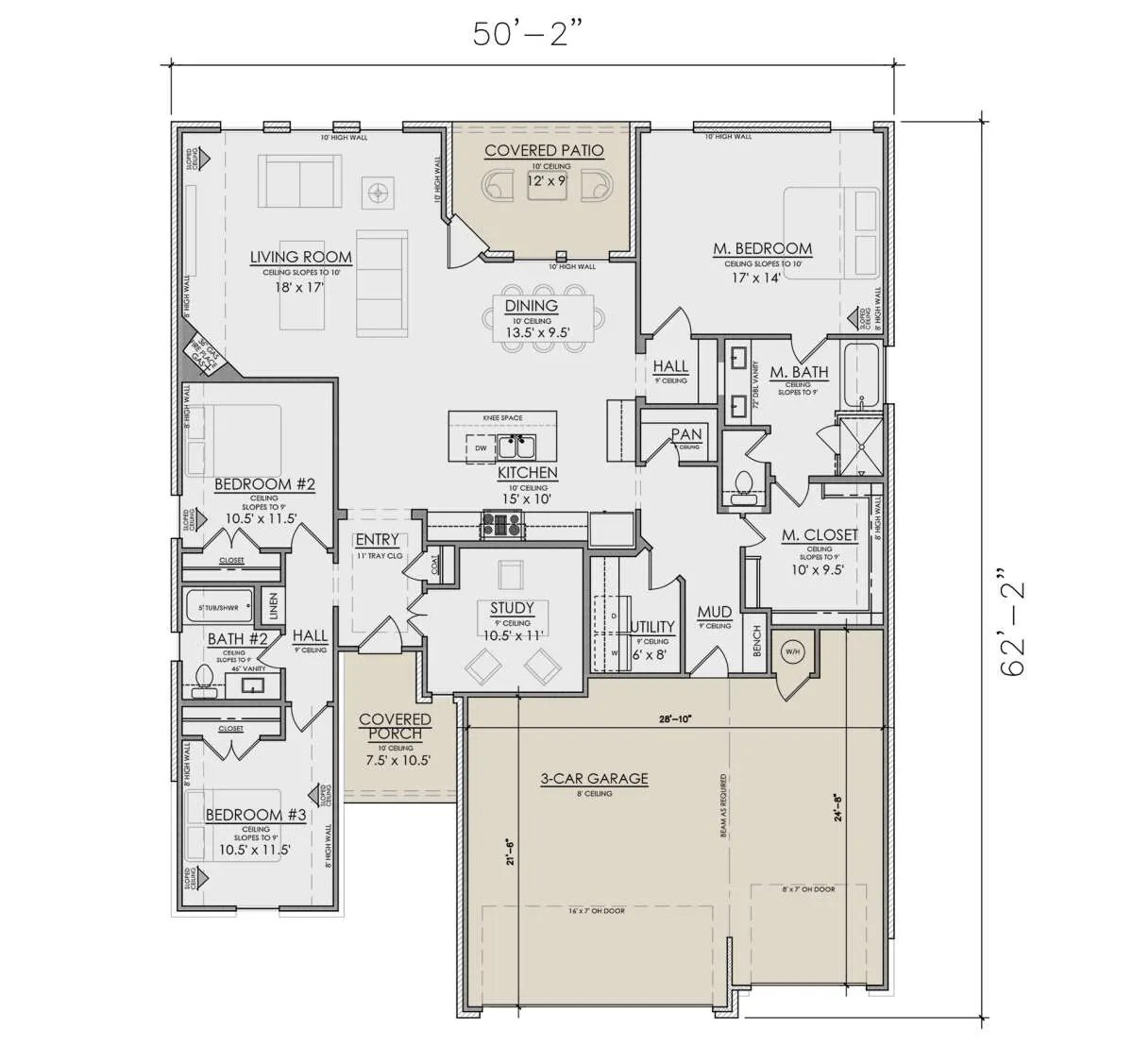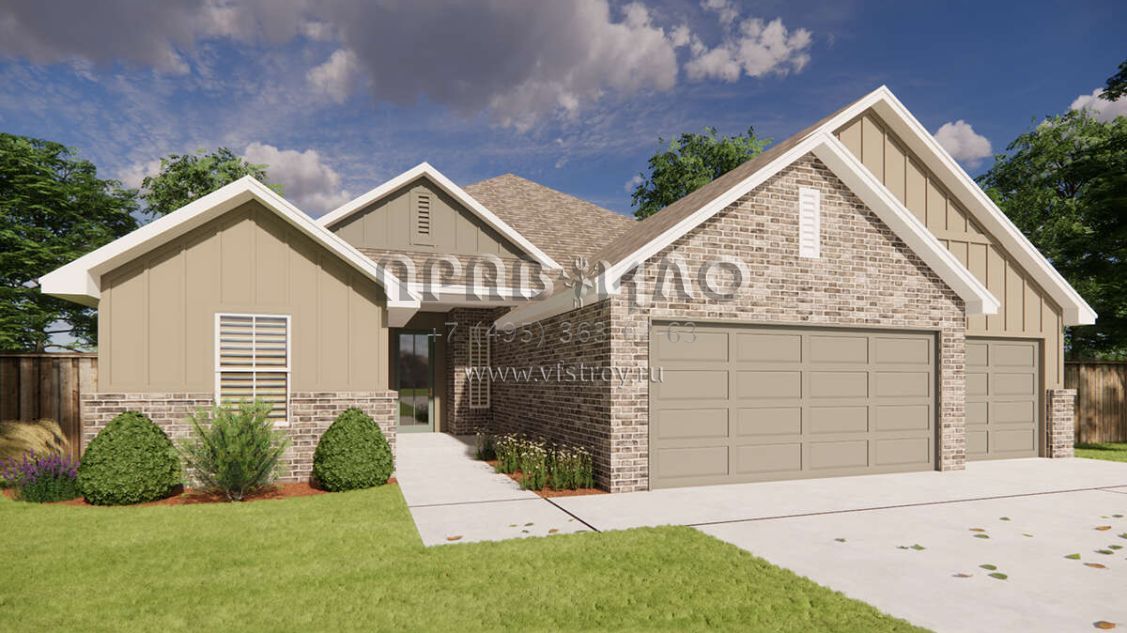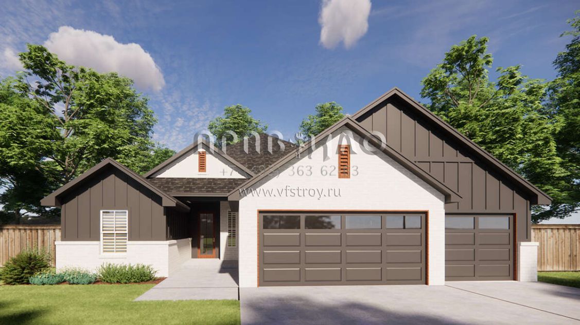 Проект одноэтажного дома с гаражом на три и более машин в стиле Ранчо S5-186 (7071-00016)