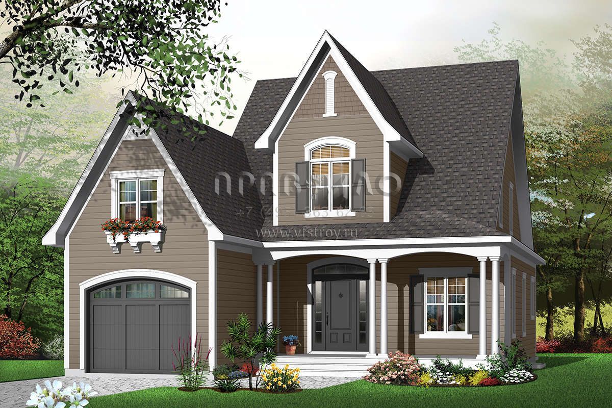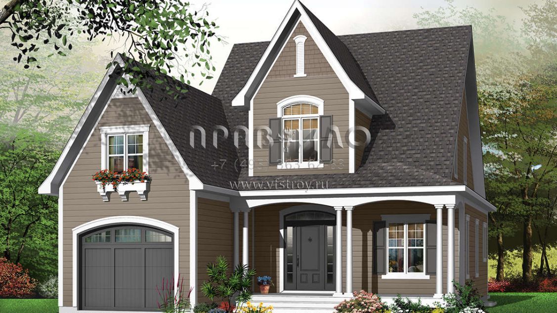 Проект двухэтажного дома с гаражом на одну машину в стиле Ранчо S5-187 (034-00411)