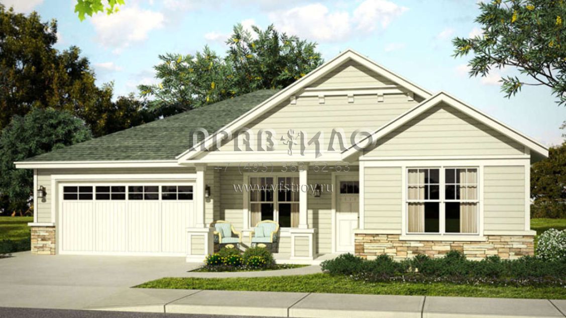 Проект одноэтажного дома с гаражом на две машины в стиле Ранчо S5-187 (035-00716)
