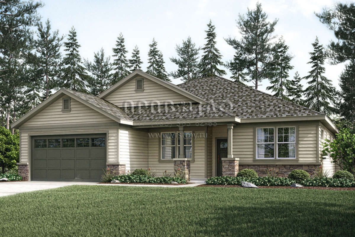 Проект одноэтажного дома с гаражом на две машины в стиле Ранчо S5-187 (035-00753)