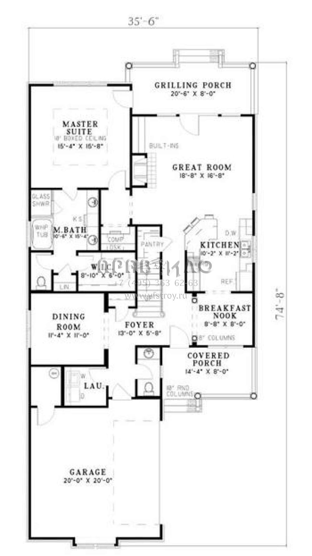 Проект двухэтажного дома с гаражом на две машины в стиле Ранчо S5-187 (110-00383)