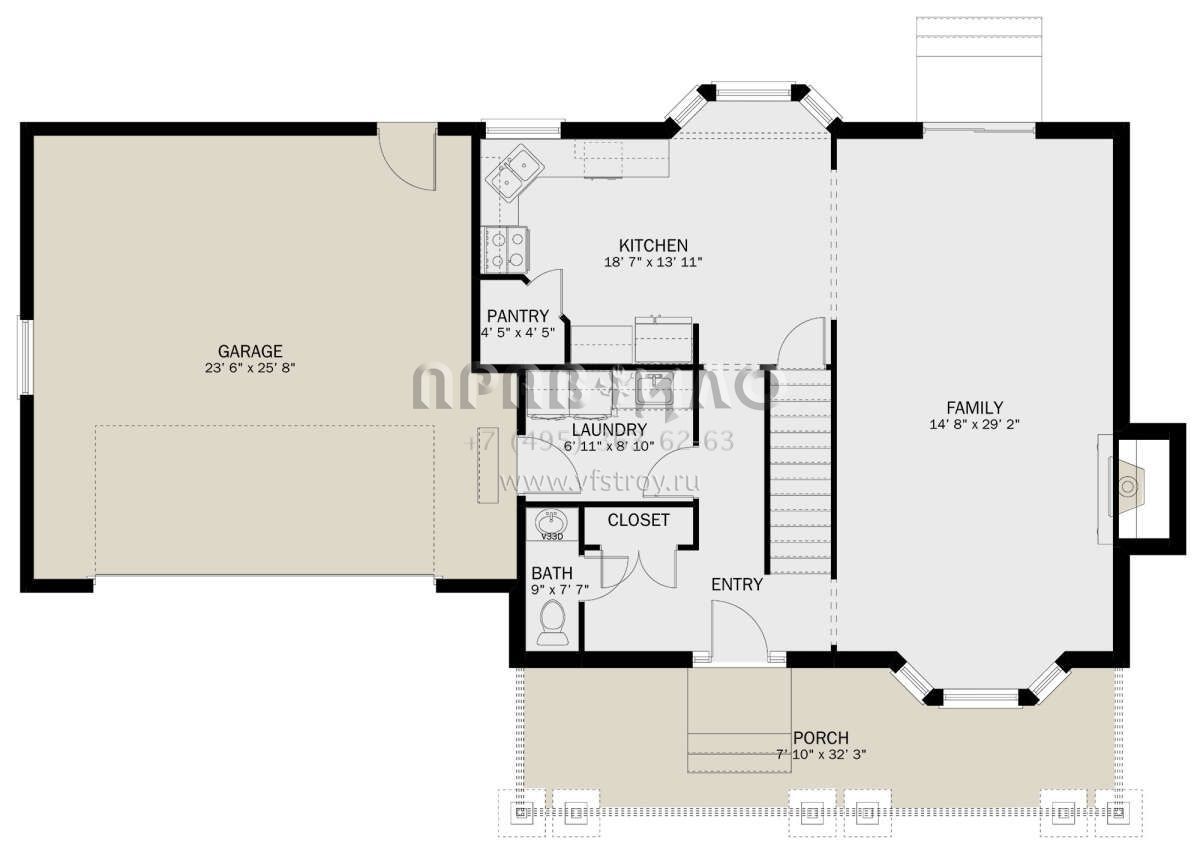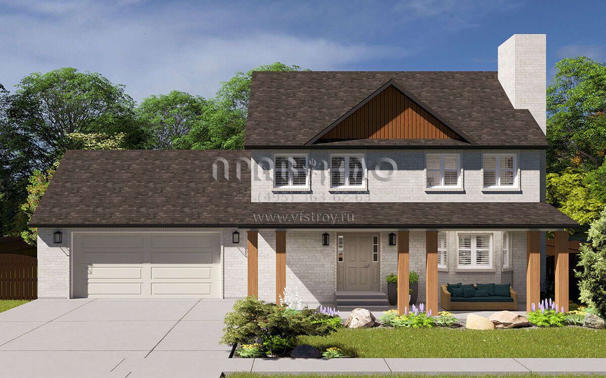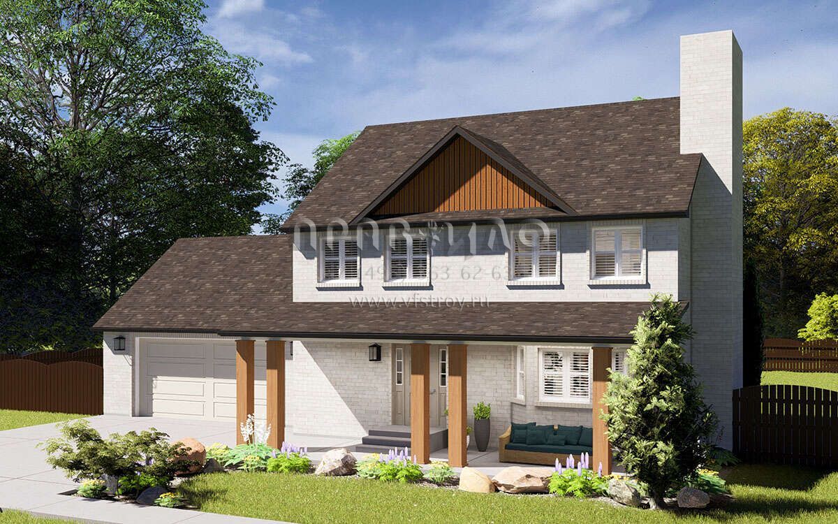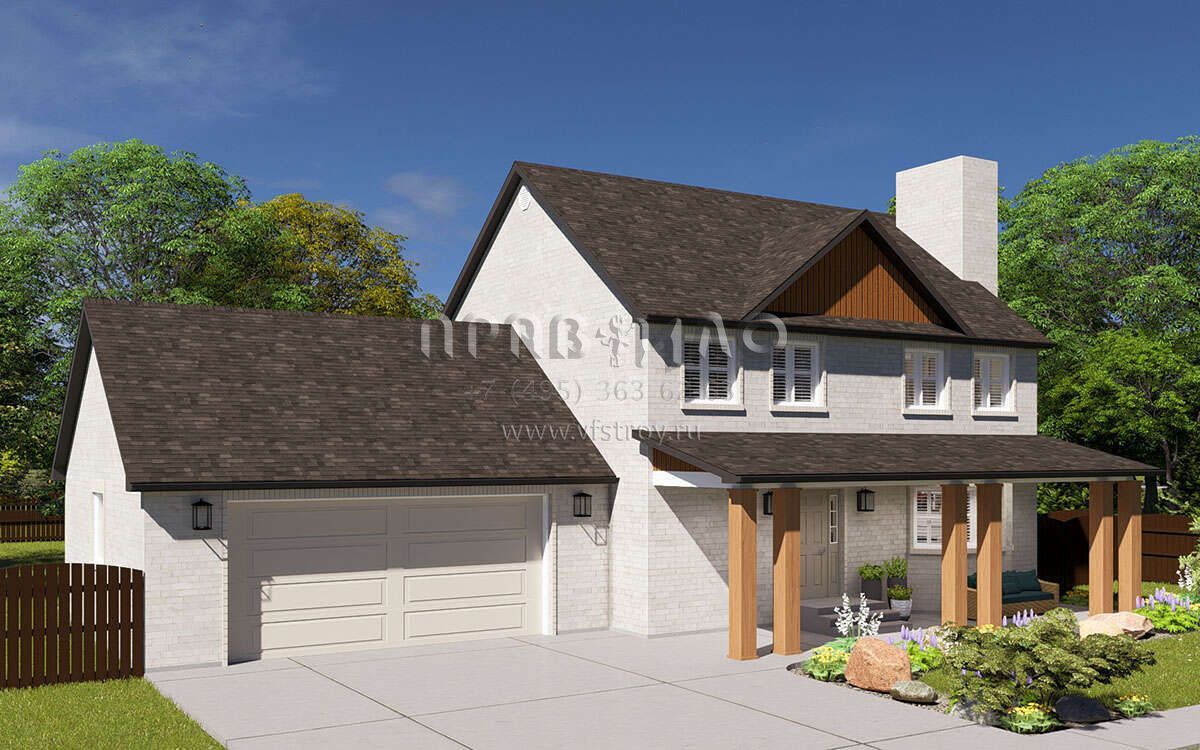 Проект двухэтажного дома с гаражом на две машины в стиле Ранчо S5-187 (2802-00011)