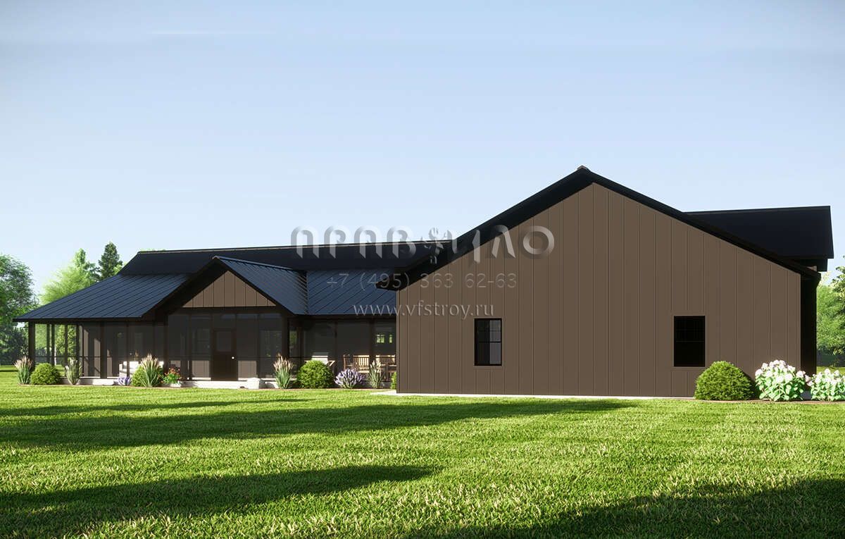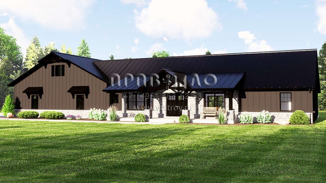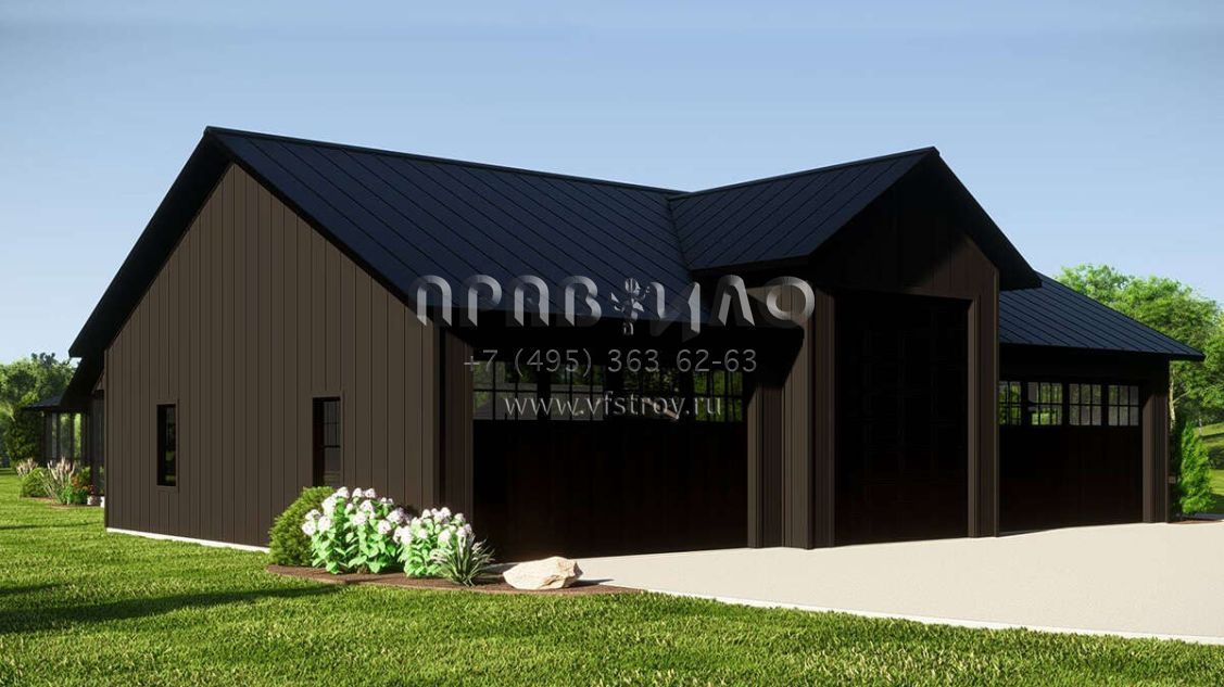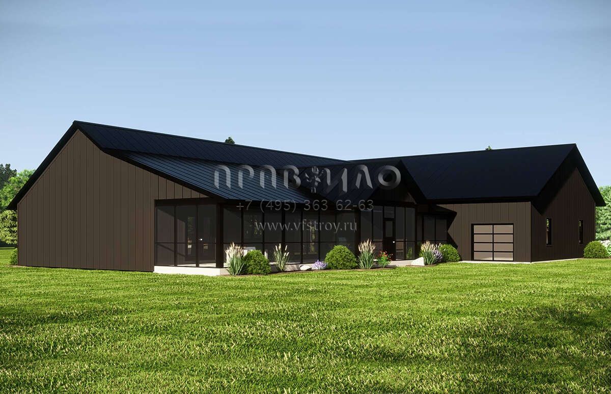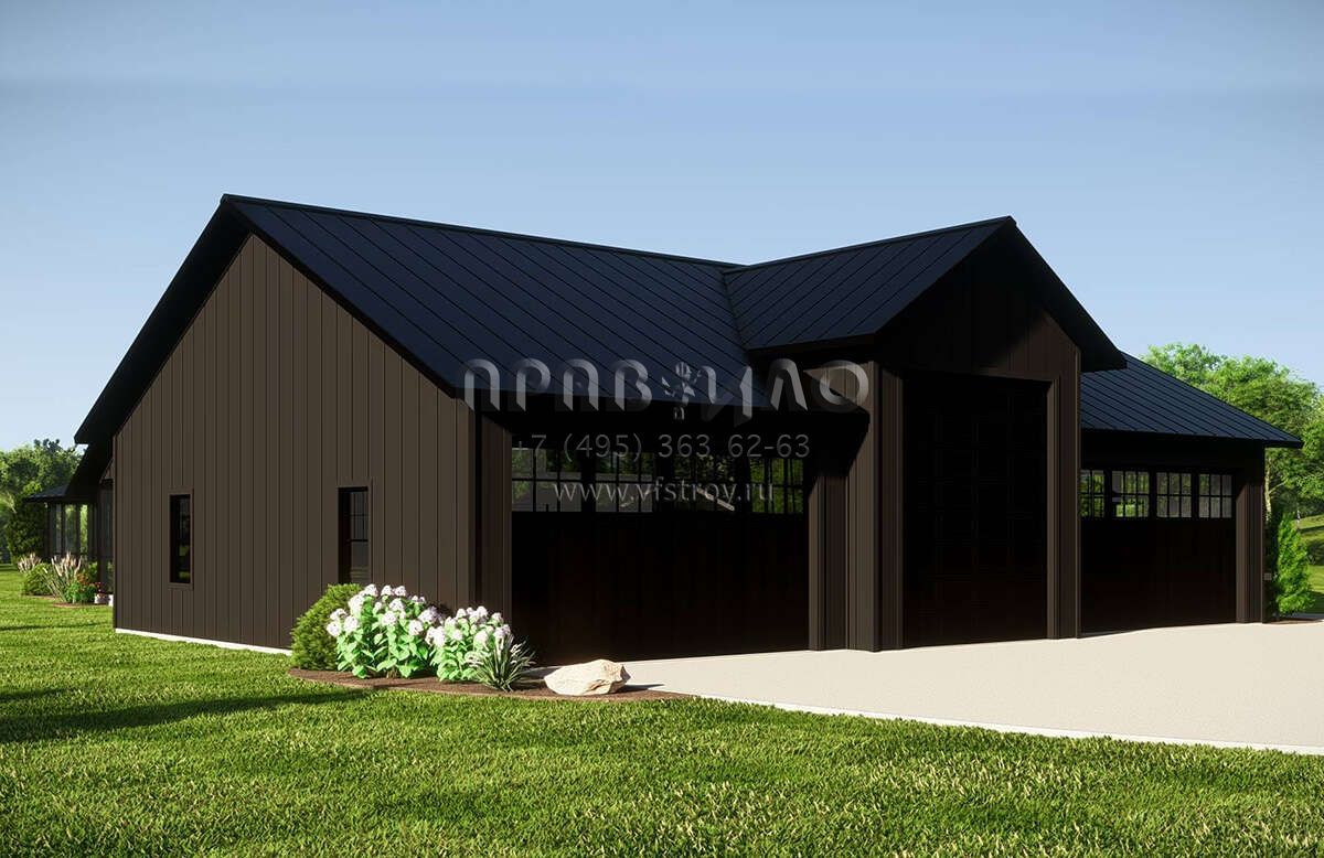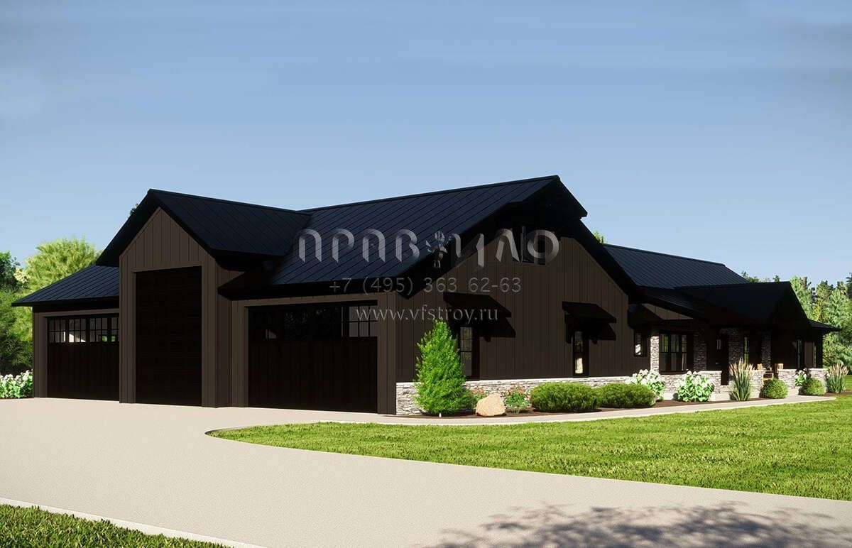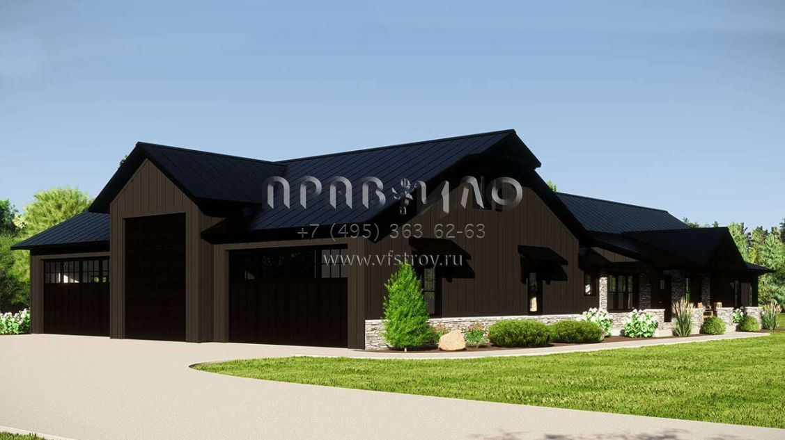 Проект одноэтажного дома с гаражом на три и более машин в стиле БарнХаус S5-187 (5032-00257)