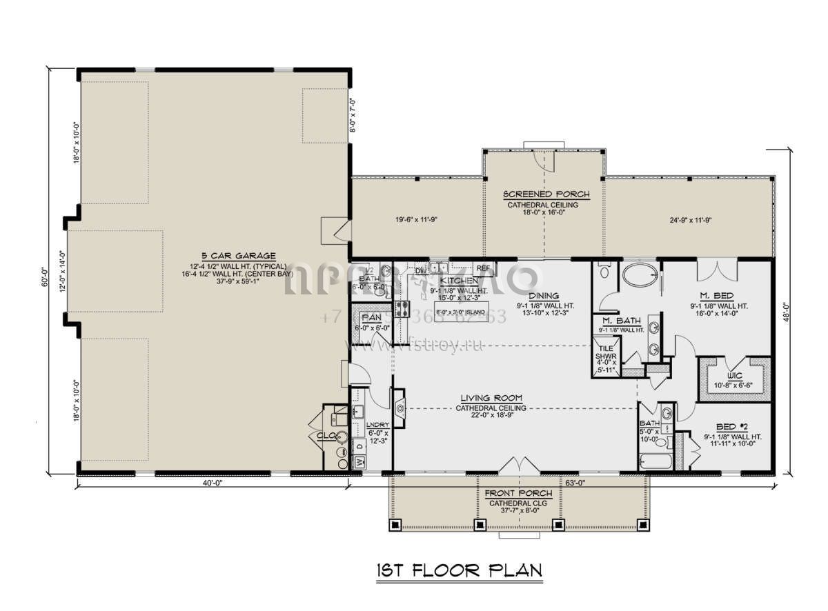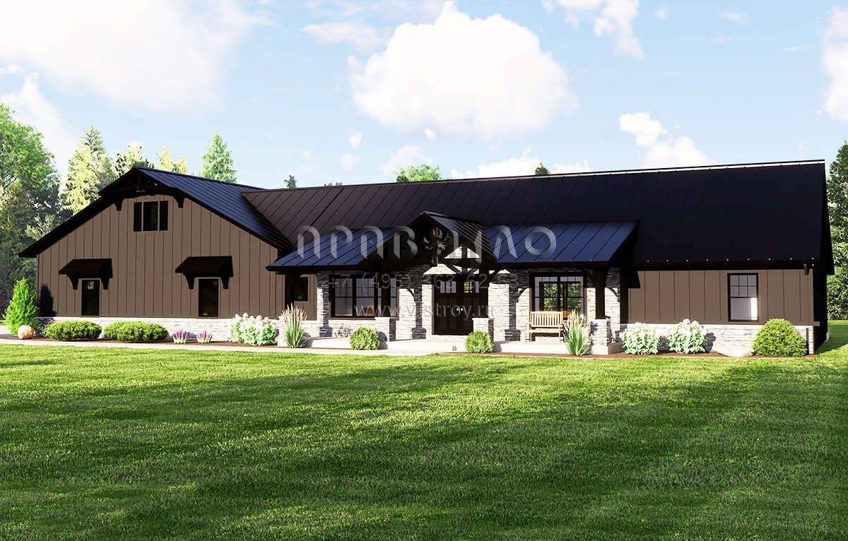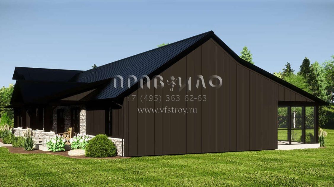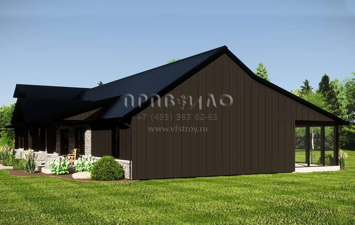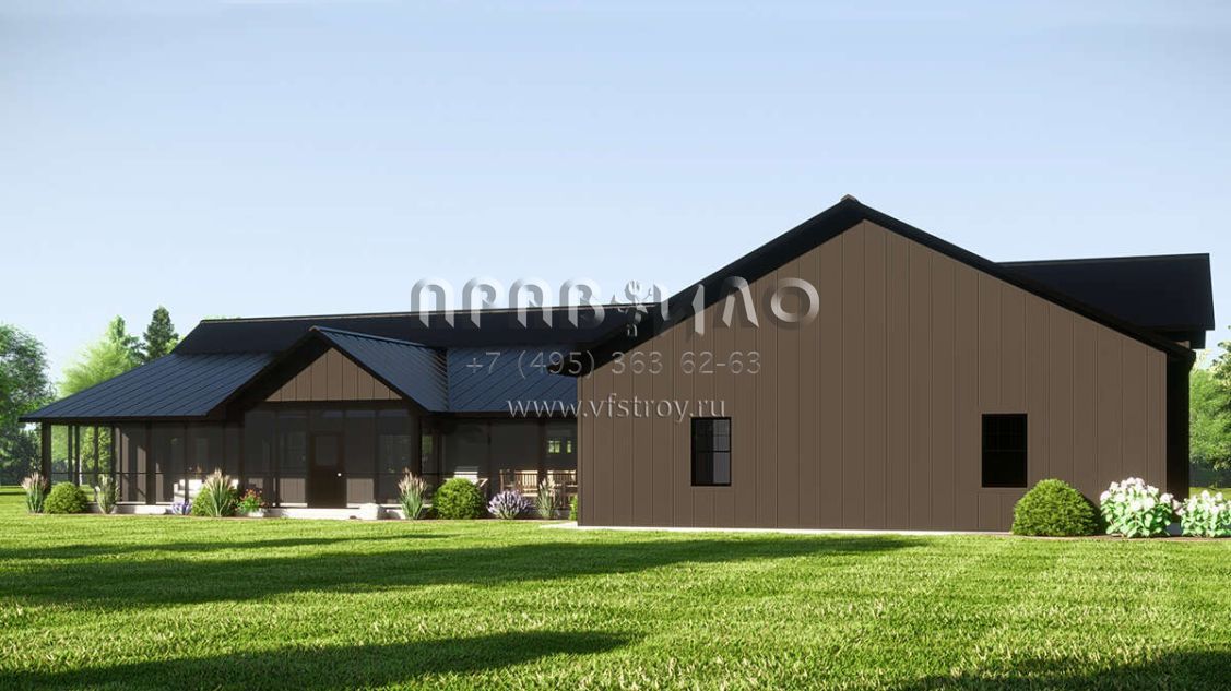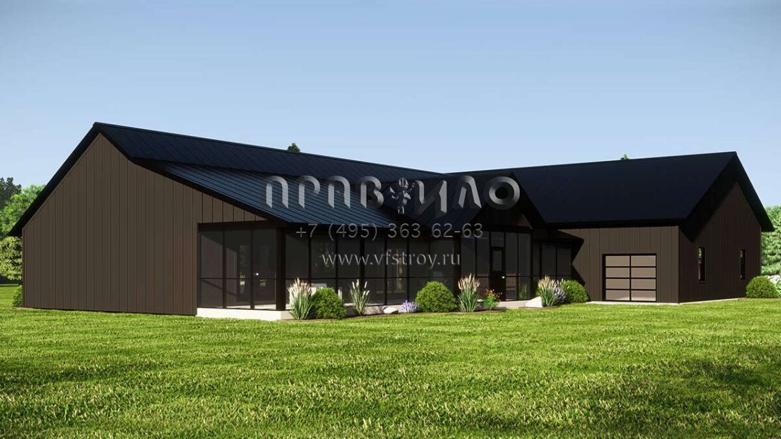 Проект одноэтажного дома с гаражом на три и более машин в стиле БарнХаус S5-187 (5032-00257)