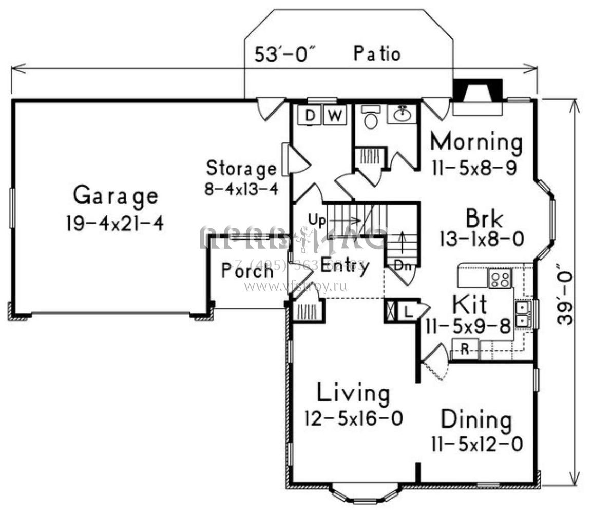 S5-187 (5633-00051) Это иностранный проект, для которого требуется адаптация под нормы, действующие в Российской Федерации. Вы видите проект дома в стиле Ранчо. В этом доме сочетаются черты сельской постройки и аскетичность лофта. Внутри жильцы смогут проводить время с максимальным комфортом. Обратим внимание, что сейчас на планировках все размеры представлены в футах. Для перевода в метры вам необходимо значение в футах умножить на 0,3048.