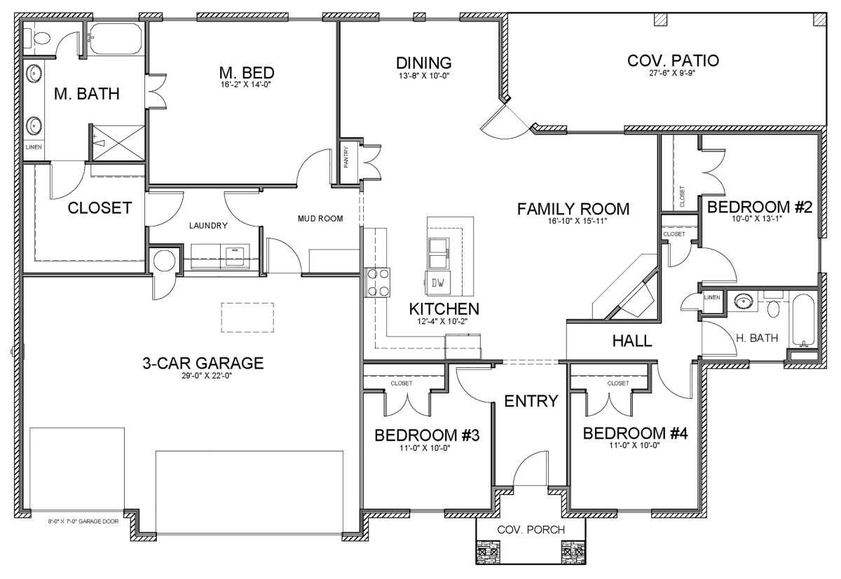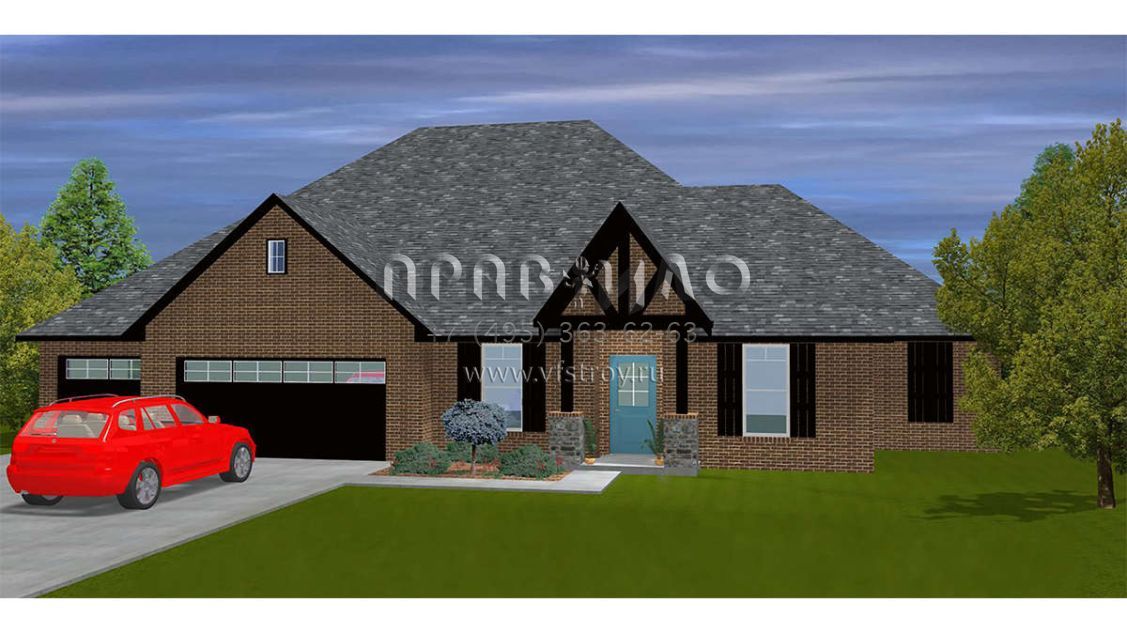 Проект одноэтажного дома с гаражом на три и более машин в стиле Ранчо S5-187 (677-00004)