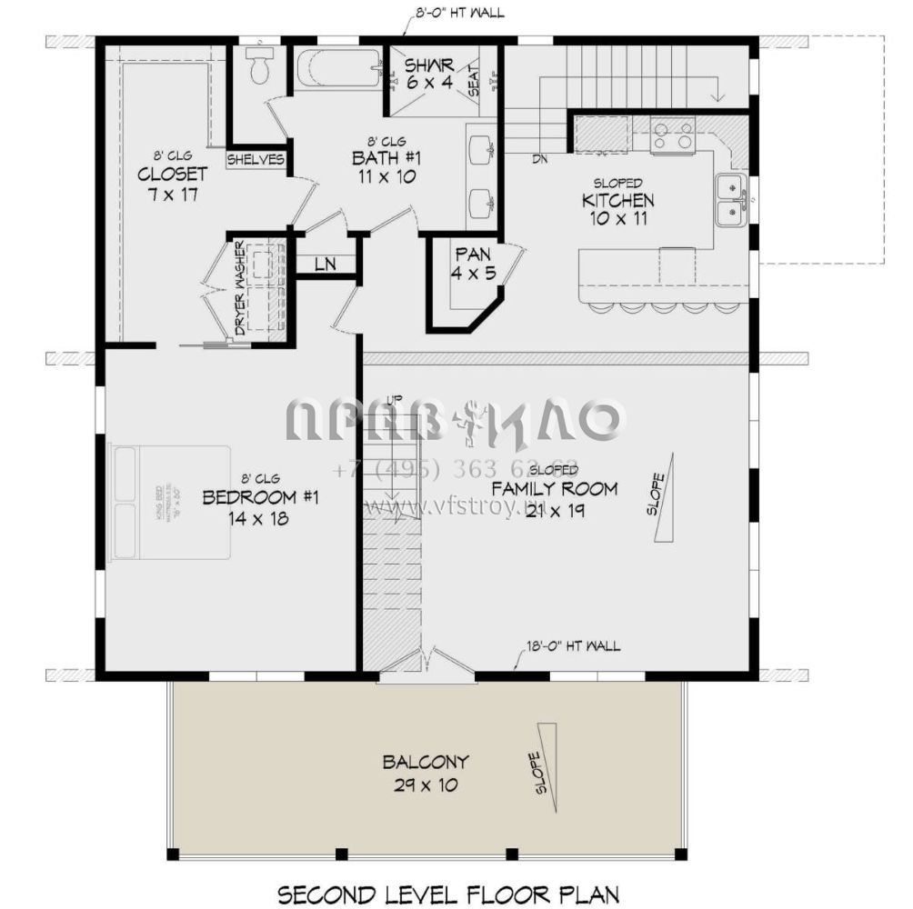 S5-187 (940-00993) Это иностранный проект, для которого требуется адаптация под нормы, действующие в Российской Федерации. Вы видите проект дома в современном стиле. В этом доме сочетаются черты сельской постройки и аскетичность лофта. Внутри жильцы смогут проводить время с максимальным комфортом. Обратим внимание, что сейчас на планировках все размеры представлены в футах. Для перевода в метры вам необходимо значение в футах умножить на 0,3048.