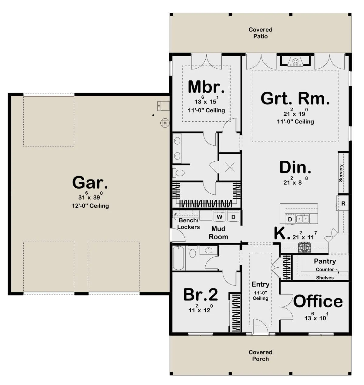 Проект одноэтажного дома с гаражом на три и более машин в стиле Ранчо S5-187 (963-00614)