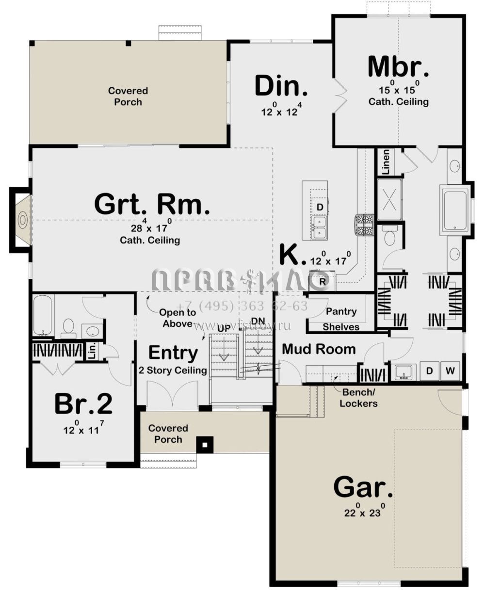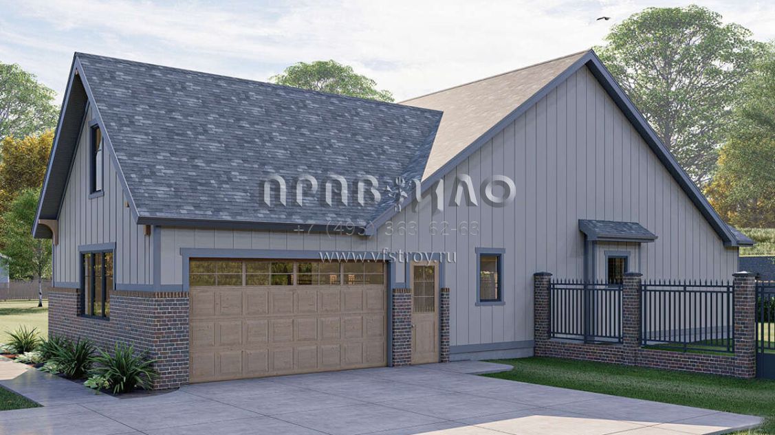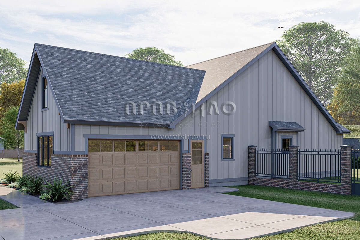 Проект одноэтажного дома с гаражом на две машины в американском стиле S5-187 (963-00641)
