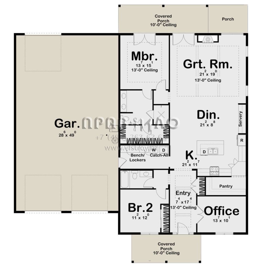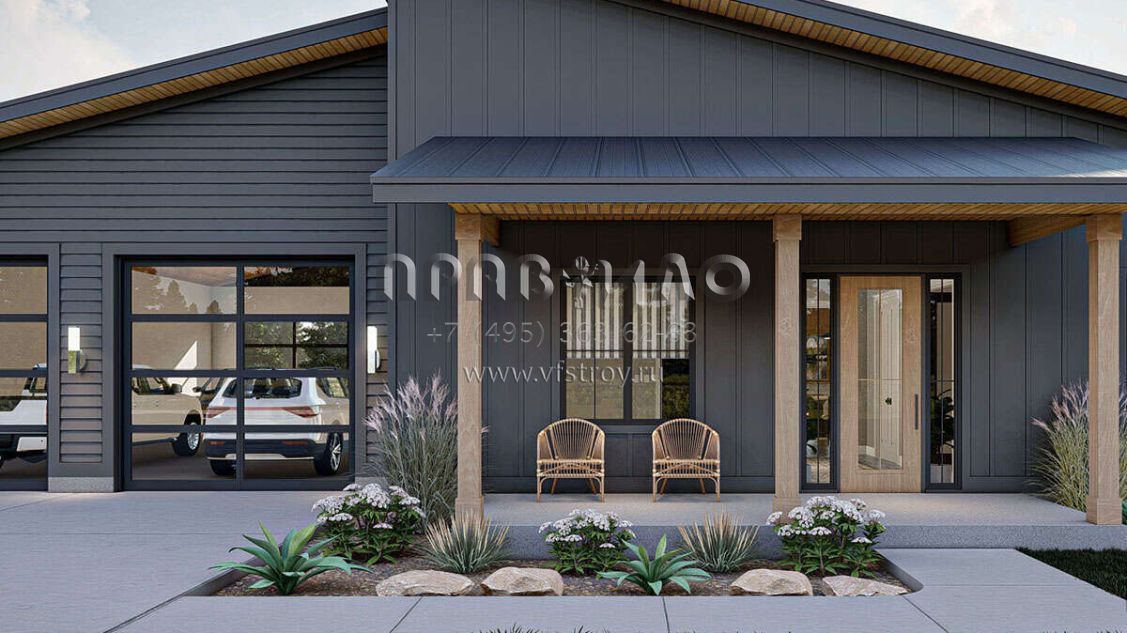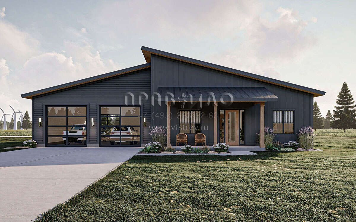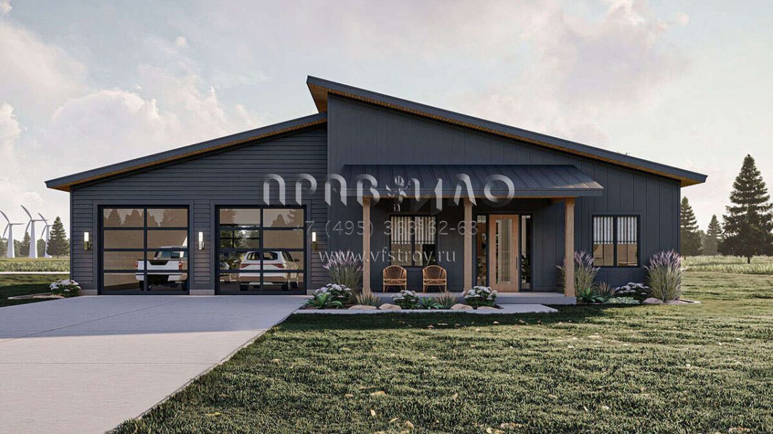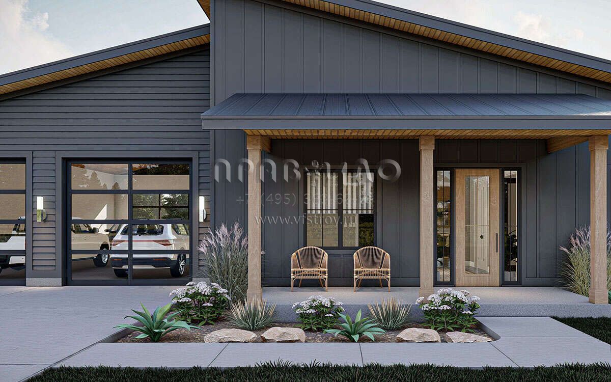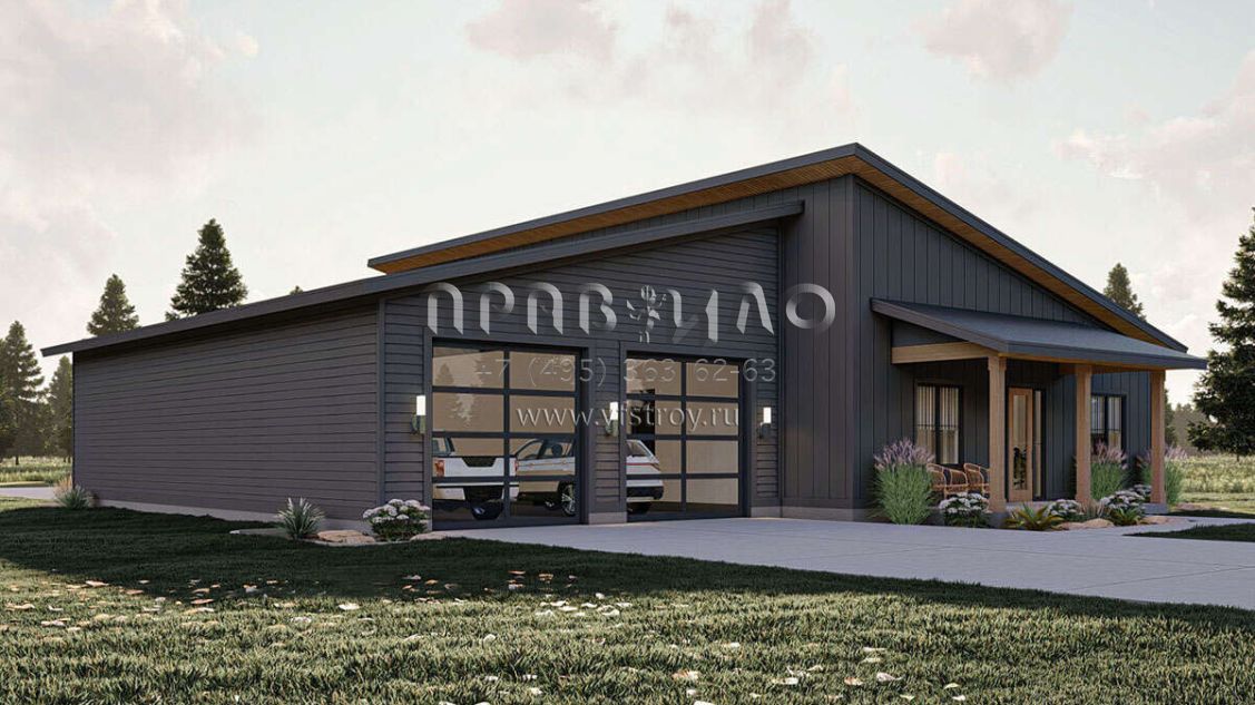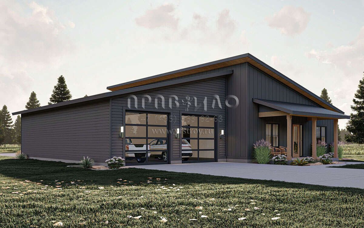Проект одноэтажного дома с гаражом на три и более машин в современном стиле S5-187 (963-00765)