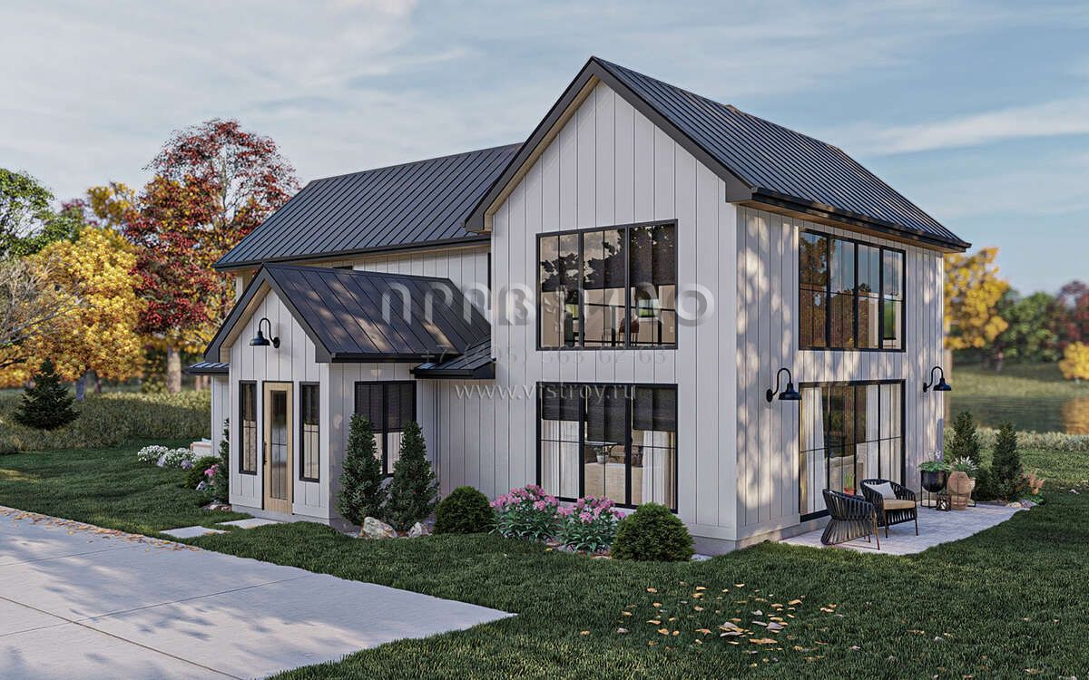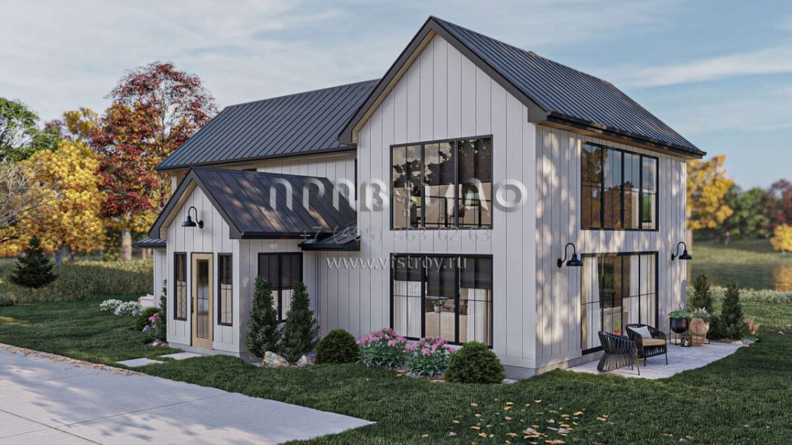 Проект двухэтажного дома без гаража в стиле БарнХаус S5-187 (963-00817)