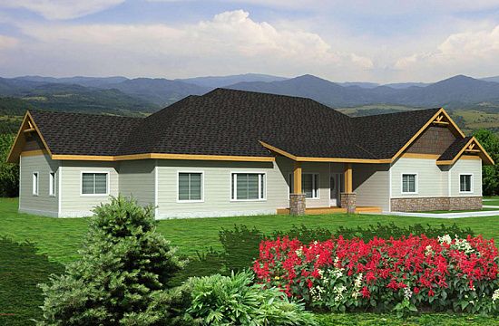 Проект двухэтажного дома с гаражом на две машины в стиле Ранчо S5-188 (2802-00009)