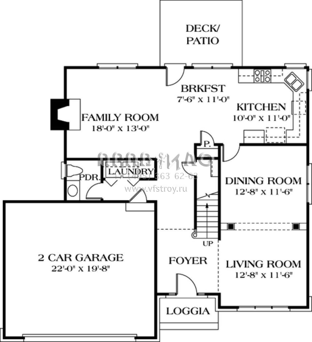 Проект двухэтажного дома с гаражом на две машины в стиле Ранчо S5-188 (3323-00070)