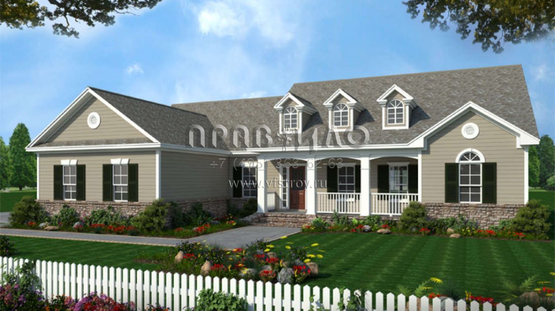 Проект одноэтажного дома с гаражом на две машины в стиле Ранчо S5-188 (348-00110)