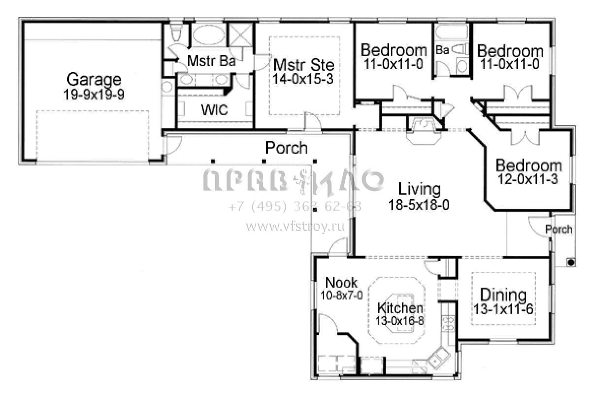 Проект одноэтажного дома с гаражом на две машины в стиле Ранчо S5-188 (9401-00053)