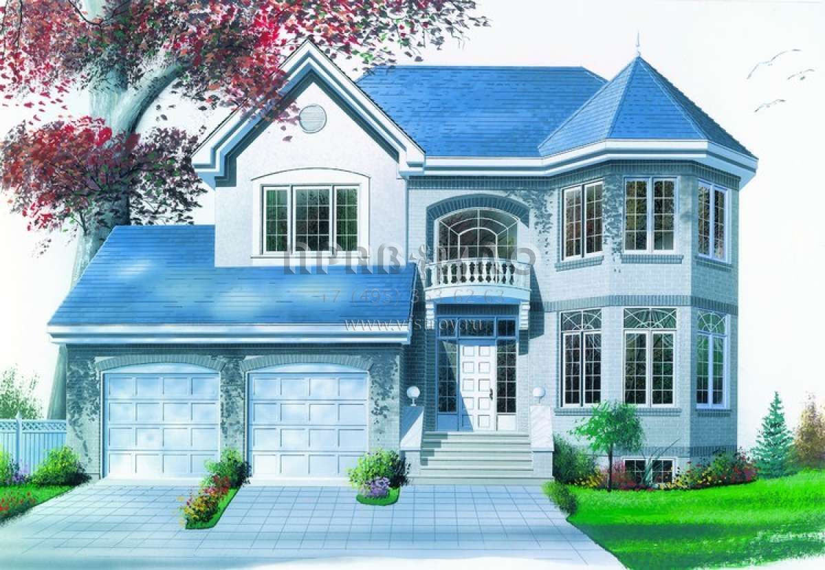 Проект двухэтажного дома с гаражом на две машины в английском стиле S5-189 (034-00513)