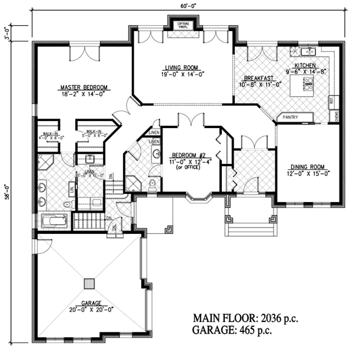 Это проект одноэтажного дома с гаражом на две машины жилой площадью 189 кв.м. Длина дома 18.6 м, ширина 18.3 м, высота 10.1 м. В доме две спальни и два санузла.