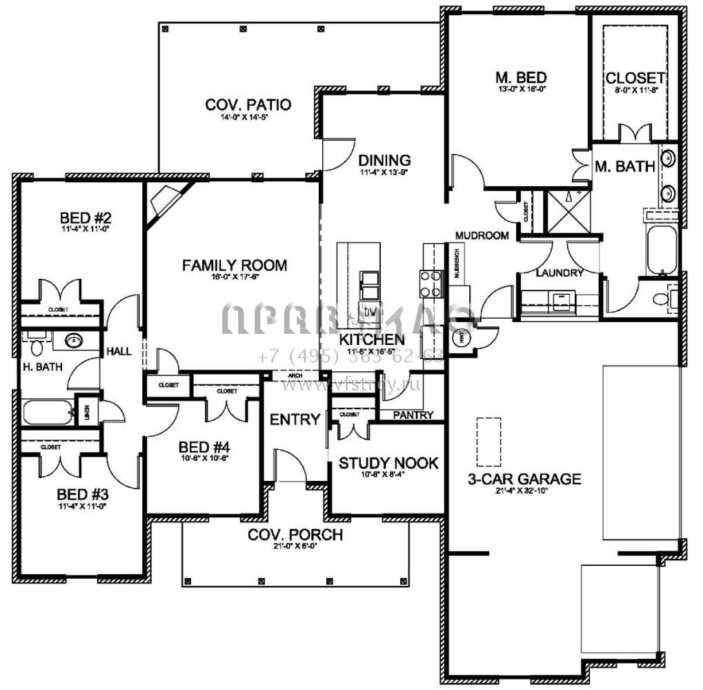 S5-189 (677-00003) Это иностранный проект, для которого требуется адаптация под нормы, действующие в Российской Федерации. Вы видите проект дома в стиле Ранчо. В этом доме сочетаются черты сельской постройки и аскетичность лофта. Внутри жильцы смогут проводить время с максимальным комфортом. Обратим внимание, что сейчас на планировках все размеры представлены в футах. Для перевода в метры вам необходимо значение в футах умножить на 0,3048.
