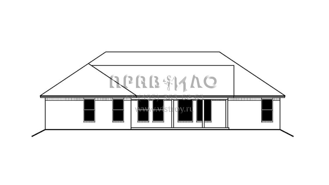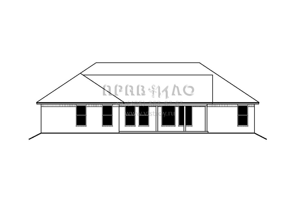 Это проект одноэтажного дома с гаражом на три и более машин жилой площадью 189 кв.м. Длина дома 18.9 м, ширина 18.9 м, высота 0 м. В доме четыре спальни и два санузла.