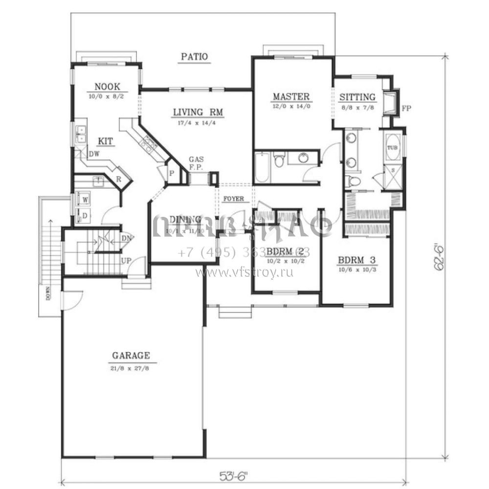 Проект двухэтажного дома с гаражом на две машины в стиле Ранчо S5-189 (692-00202)