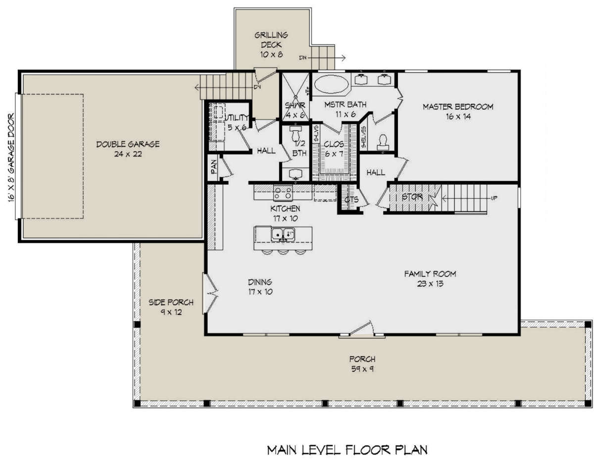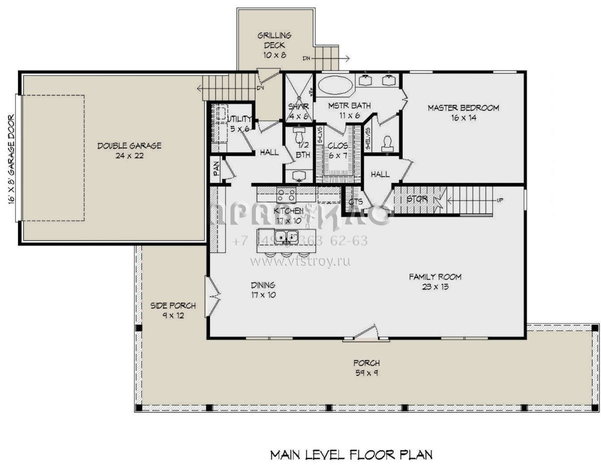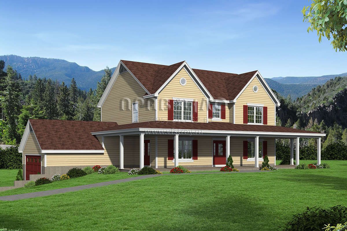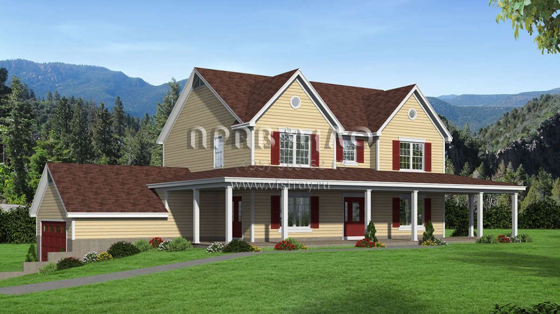 Проект двухэтажного дома с гаражом на две машины в стиле Ранчо S5-189 (940-00142)