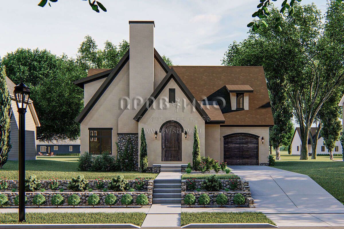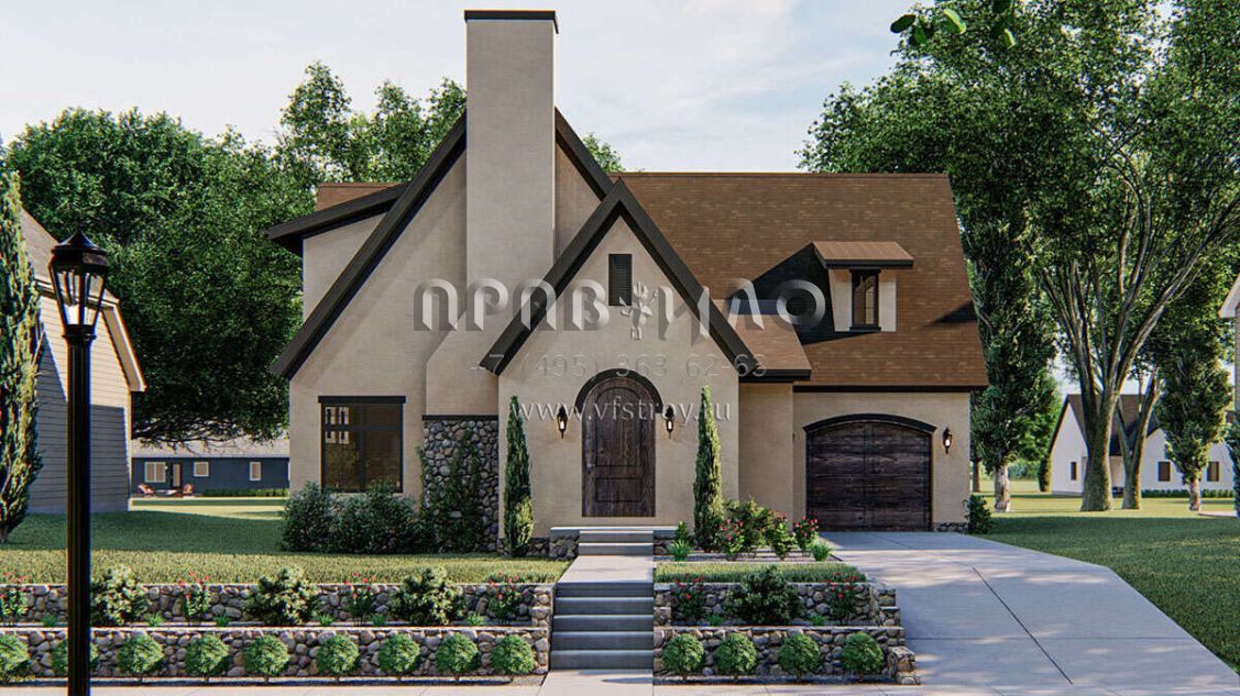 Проект двухэтажного дома с гаражом на одну машину в современном стиле S5-189 (963-00397)