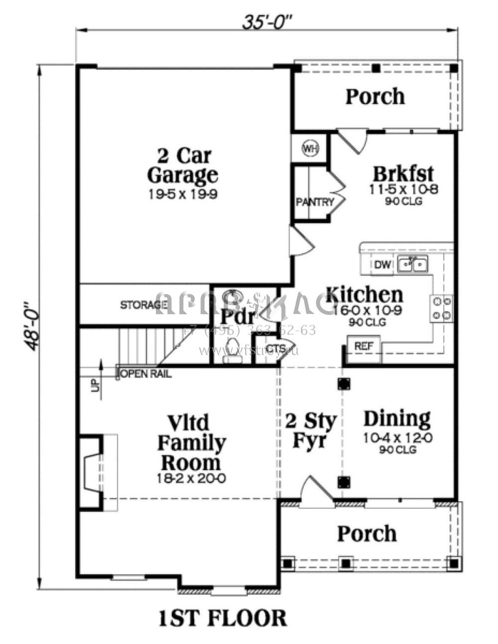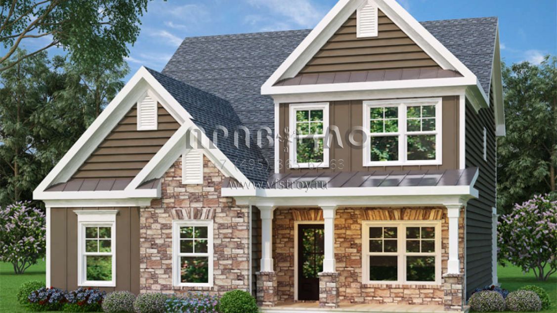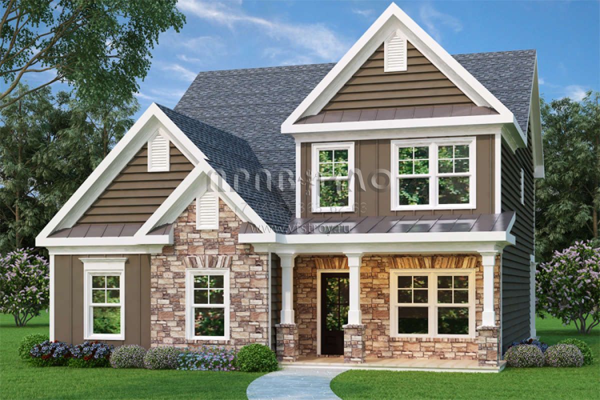 Проект двухэтажного дома с гаражом на две машины в стиле Ранчо S5-190 (009-00107)