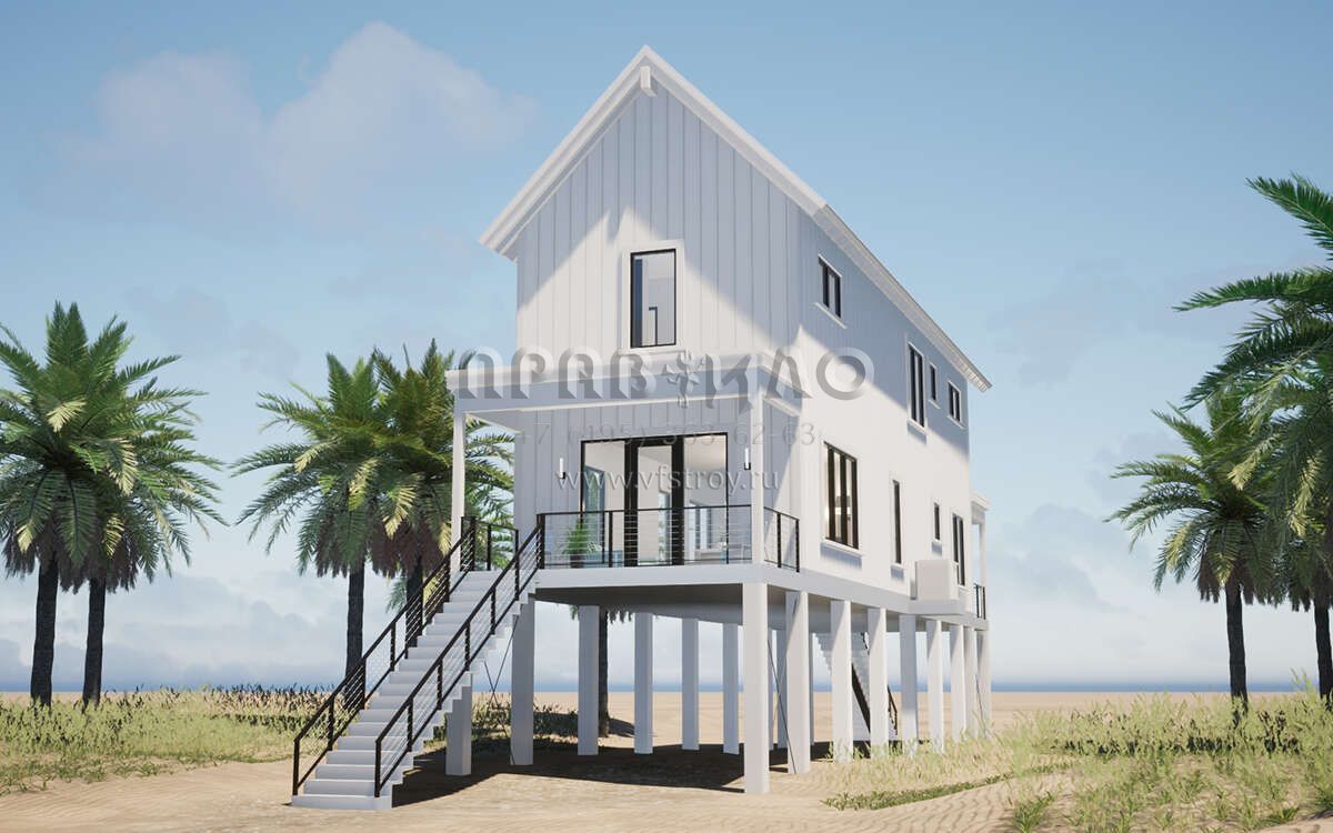 S5-190 (028-00196) Это иностранный проект, для которого требуется адаптация под нормы, действующие в Российской Федерации. Вы видите проект дома в прибрежном стиле. В этом доме сочетаются черты сельской постройки и аскетичность лофта. Внутри жильцы смогут проводить время с максимальным комфортом. Обратим внимание, что сейчас на планировках все размеры представлены в футах. Для перевода в метры вам необходимо значение в футах умножить на 0,3048.