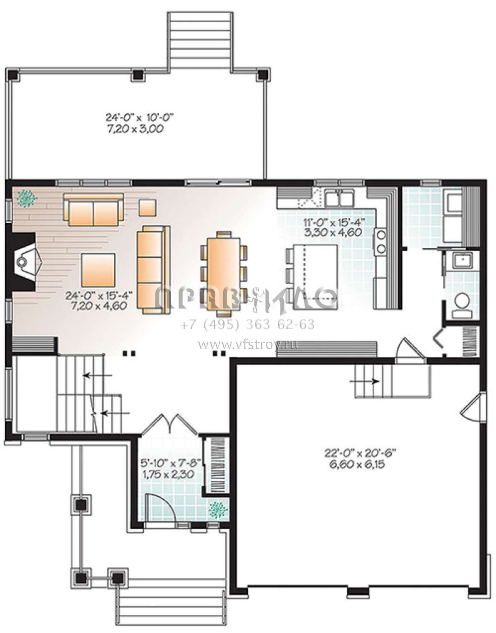 S5-190 (034-01103) Это иностранный проект, для которого требуется адаптация под нормы, действующие в Российской Федерации. Вы видите проект дома в современном стиле. В этом доме сочетаются черты сельской постройки и аскетичность лофта. Внутри жильцы смогут проводить время с максимальным комфортом. Обратим внимание, что сейчас на планировках все размеры представлены в футах. Для перевода в метры вам необходимо значение в футах умножить на 0,3048.