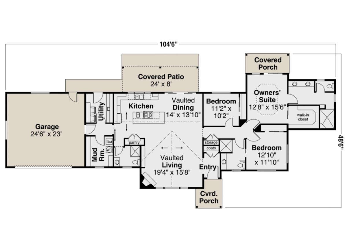 Проект одноэтажного дома с гаражом на две машины в стиле Ранчо S5-190 (035-01034)