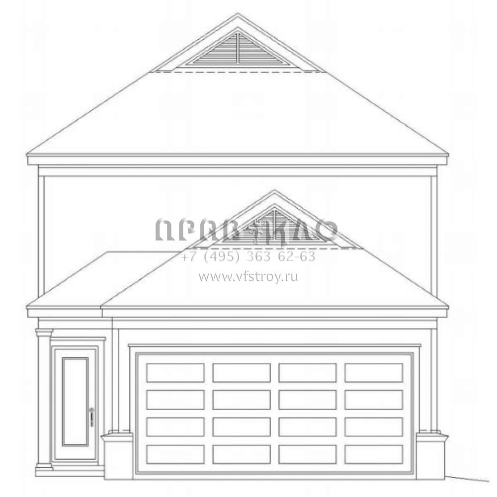 Это проект двухэтажного дома с гаражом на две машины жилой площадью 190 кв.м. Длина дома 21.9 м, ширина 7.3 м, высота 7.9 м. В доме три спальни и два санузла.