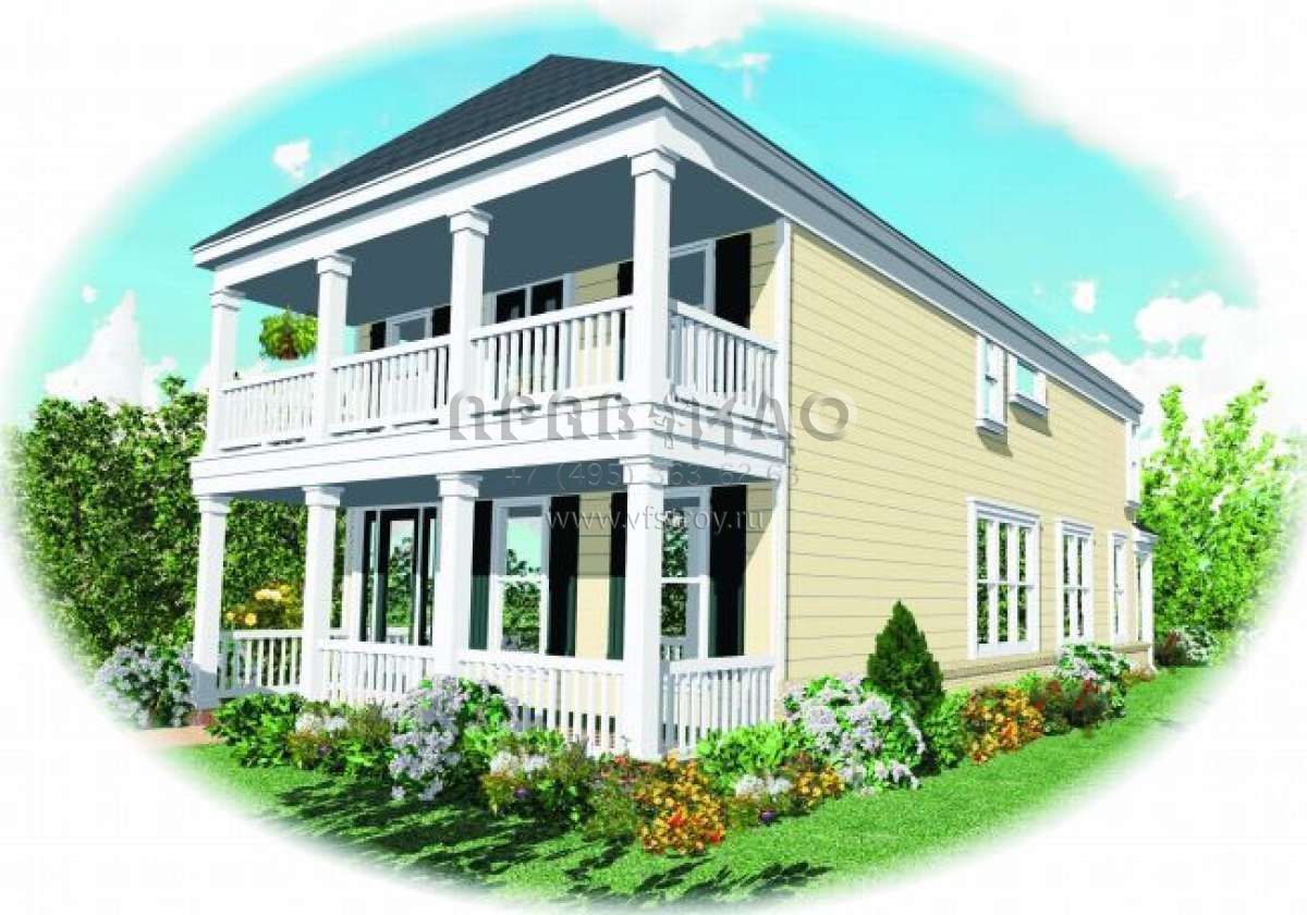 Двухэтажный проект дома позволяет рационально распорядиться площадью участка небольшого размера или узкой формы. На первом этаже находятся общие комнаты (гостиная/столовая, кухня, подсобные и технические помещения), на втором — спальни членов семьи.
