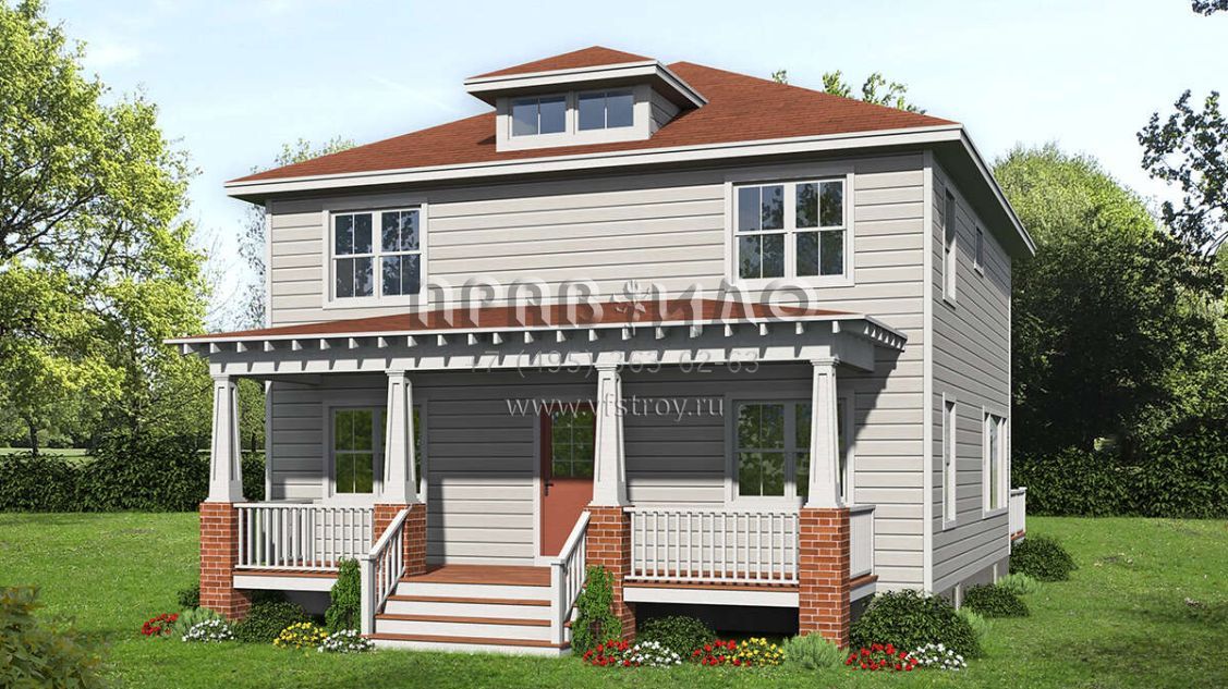 Проект двухэтажного дома без гаража в стиле Ранчо S5-190 (1754-00039)
