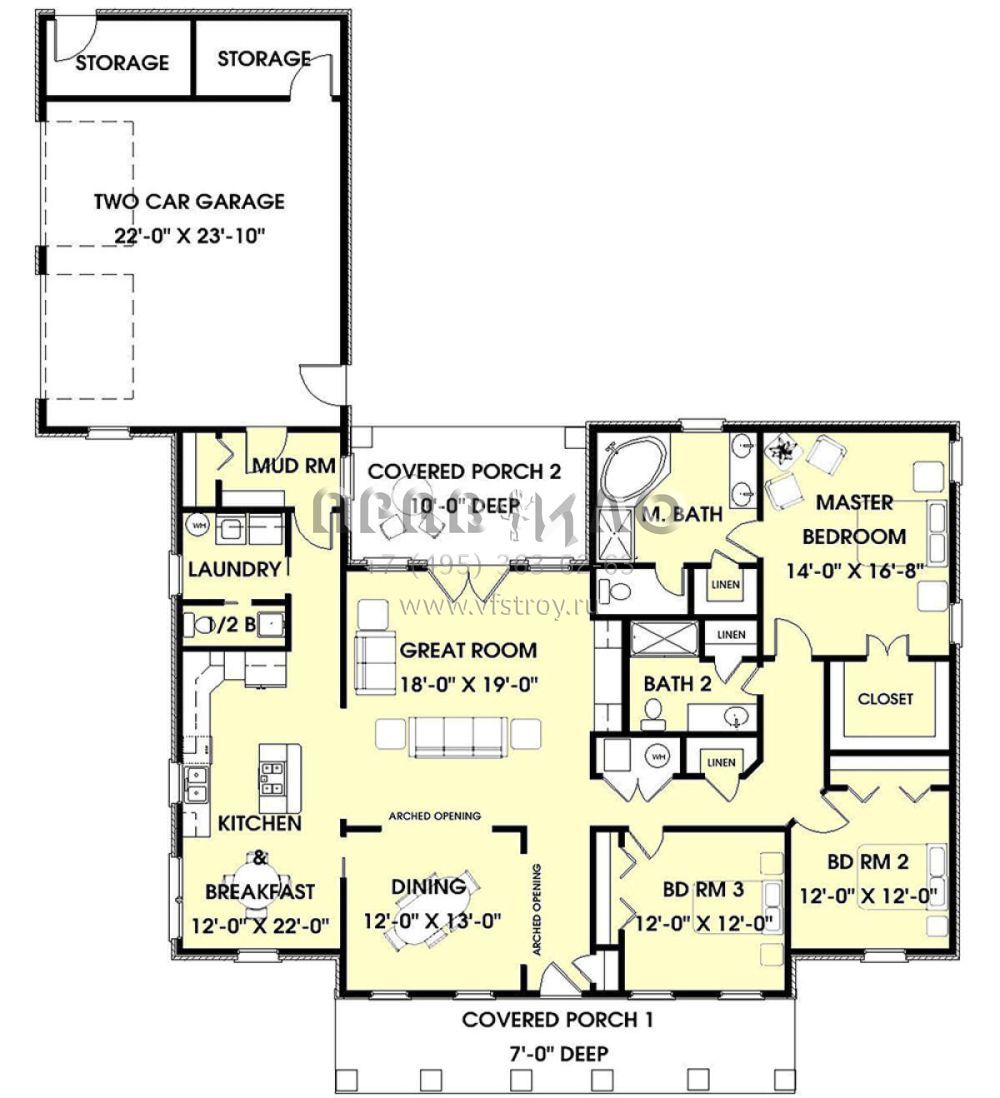 Проект одноэтажного дома с гаражом на две машины в стиле Ранчо S5-190 (1776-00045)